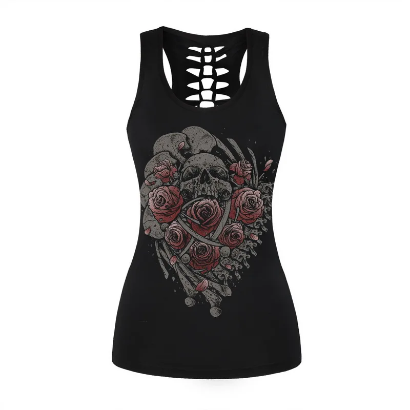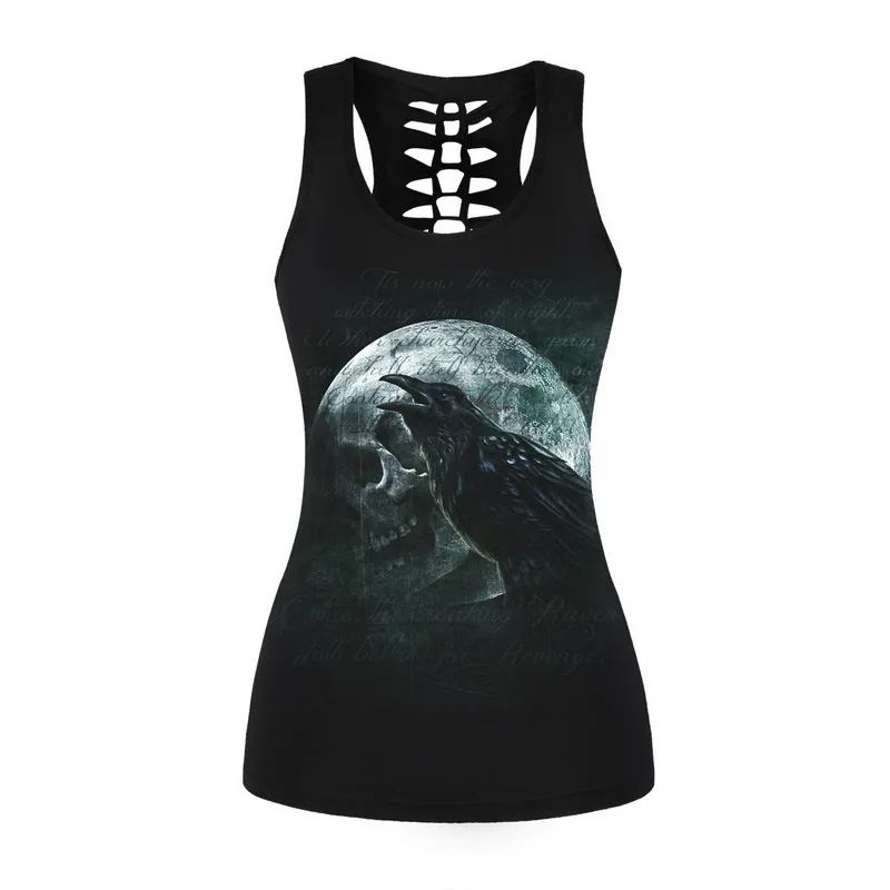 Punk Youth Brand 3d Printed Skull Punk Rock Sexy Black Tank Top Sporting Fitness Women Vests