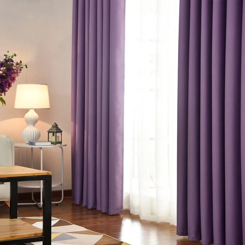 Purple Color Polyester fiber Blackout Curtains for Living Room Navy Blue Curtains for Bedroom Window Curtains kitchen Blinds &30