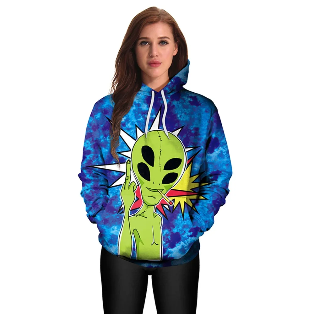 Purple Starry Sky Sweatshirts Pullover Black Alien Face Skateboarding Hoodies Hip Hop Hoody Autumn Winter Sport Suits Men