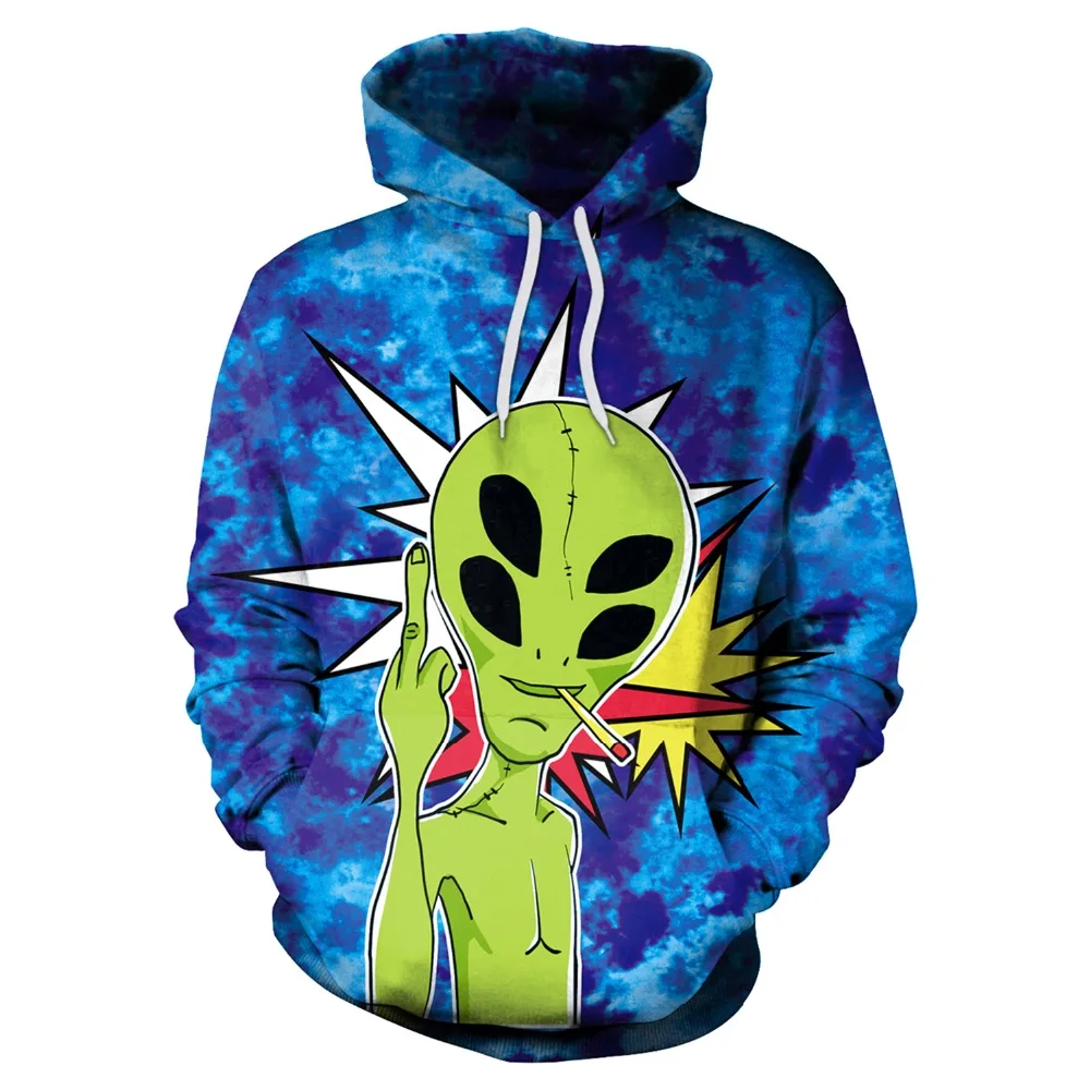 Purple Starry Sky Sweatshirts Pullover Black Alien Face Skateboarding Hoodies Hip Hop Hoody Autumn Winter Sport Suits Men