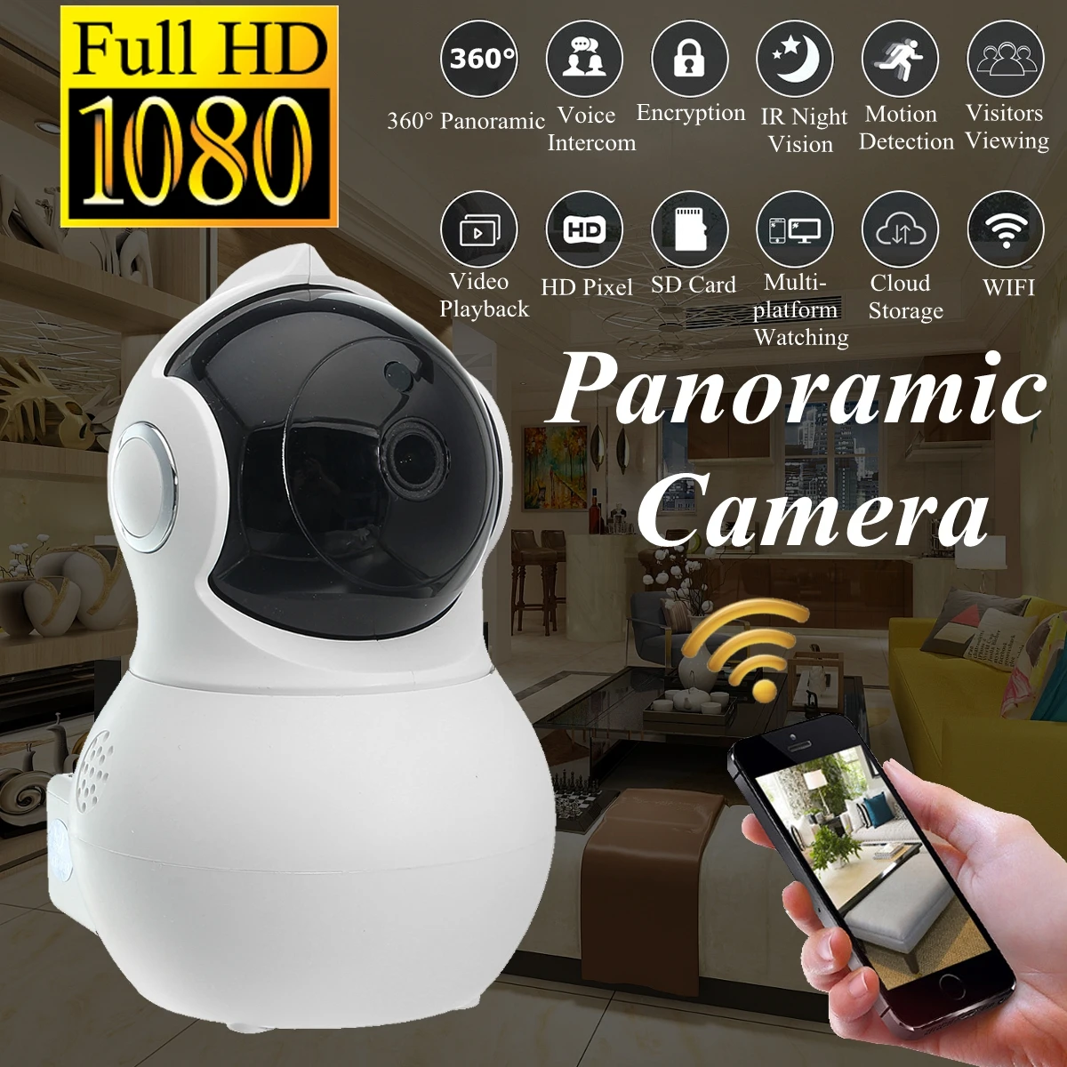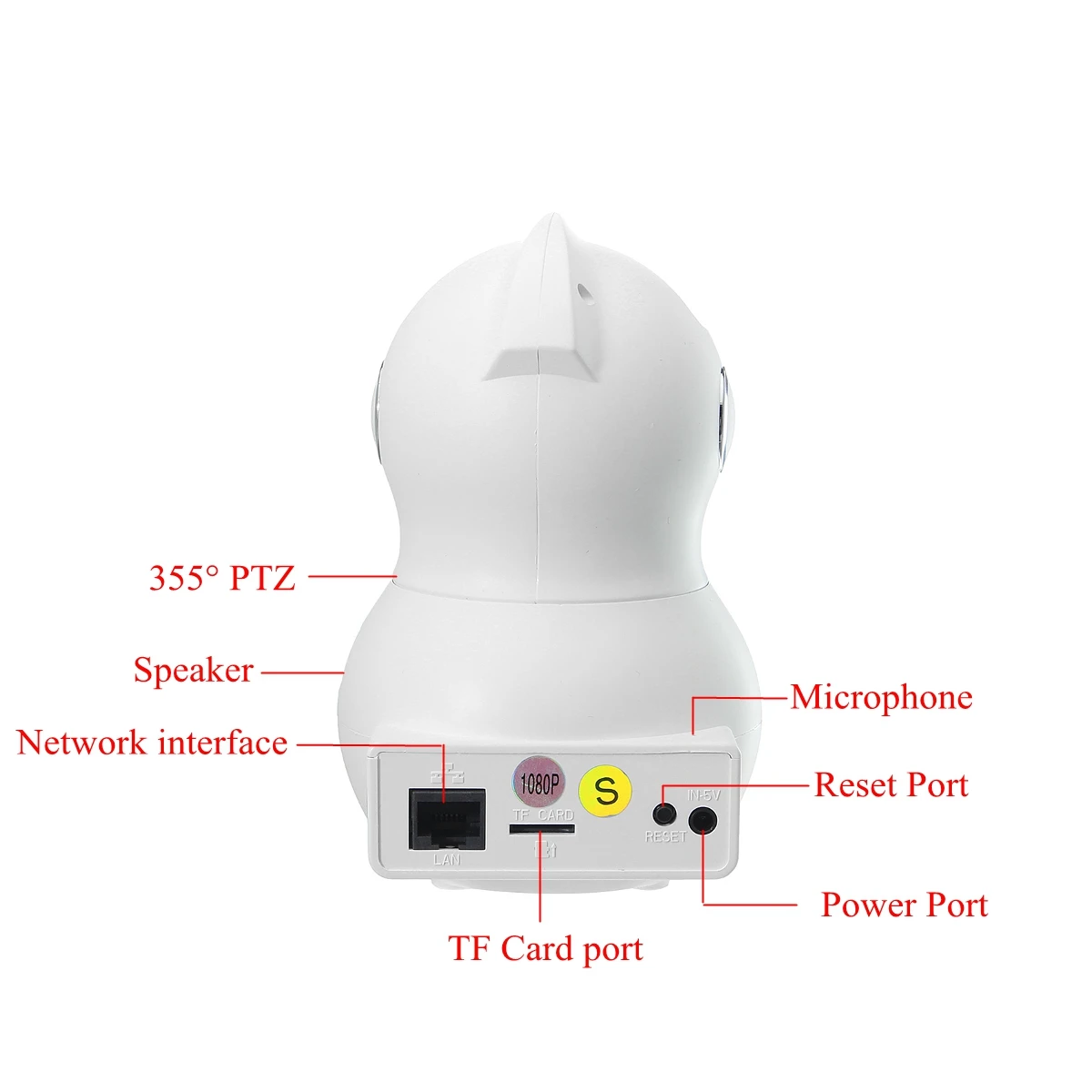 Features: Motion Detection, Smart Alarm, A P Hotspot, 355° Rotate, Voice Intercom, Cloud Storage, HD Lens, Cell Phone Control