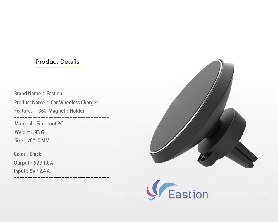 Magnetic Car Wireless Charging: simply place down any Qi-enabled device or device equipped with a Qi-compatible cover, no cables or USB interface required