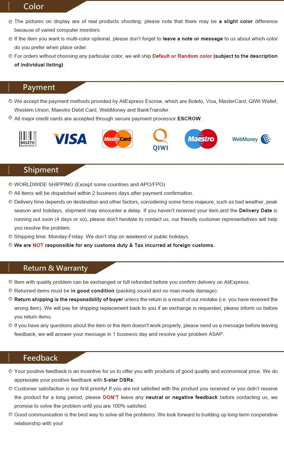 Shipping & Payment