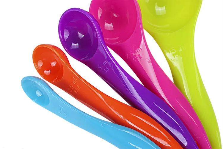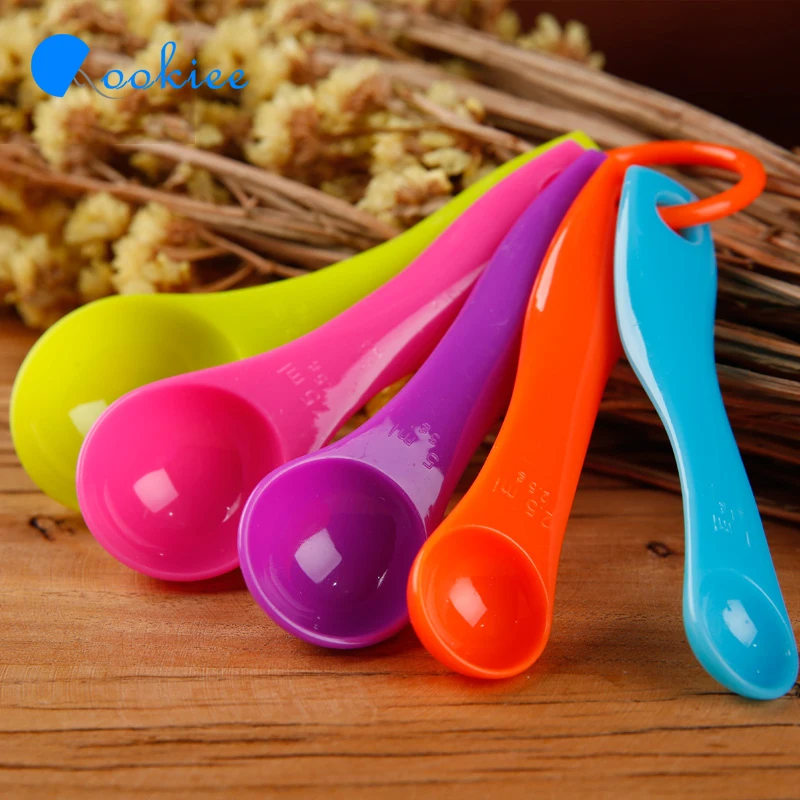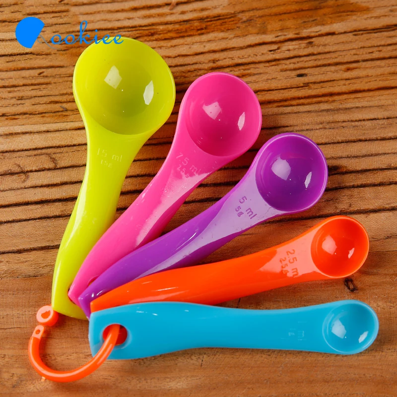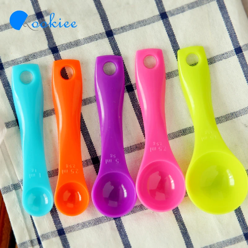 Qookiee 5pcs/set Measuring Spoons Colorful Plastic (1/2.5/5/7.5/15 g) Kitchen Measure Spoon Super Useful Sugar Cake Baking Spoon