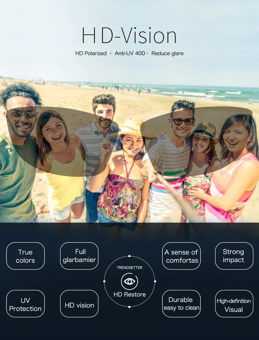 2.Colorful polarized lens, Uv400 protection.