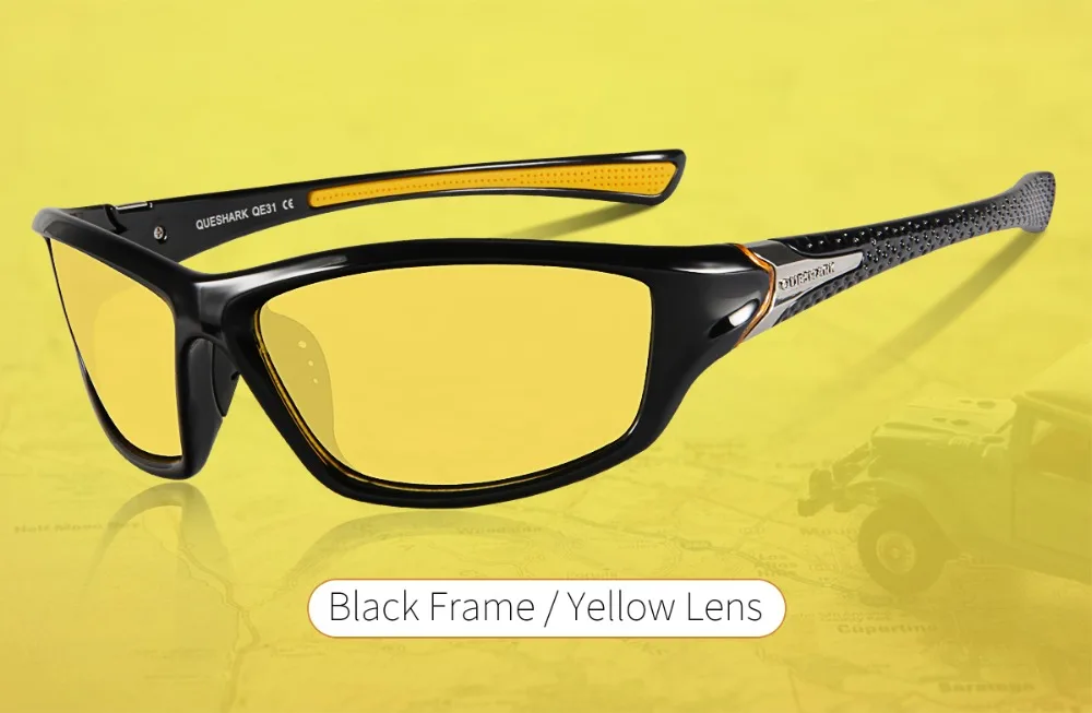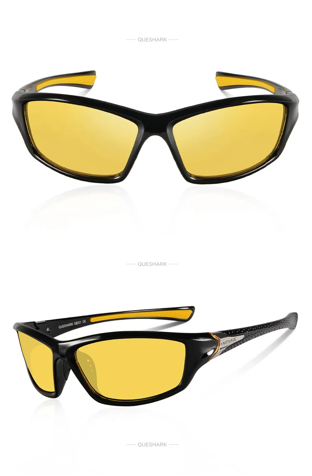 QUESHARK Polarized Cycling Eyewear Night Riding Yellow Lens Uv Protection Bicycle Sunglasses Unisex Driving Hiking Sports Glasses