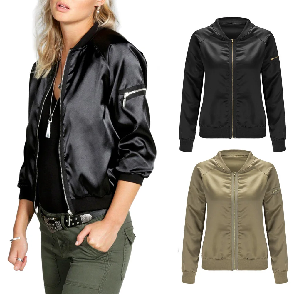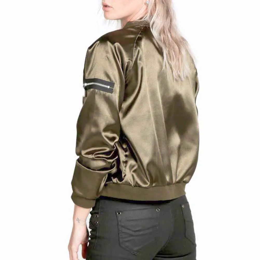 Quilted Sweatshirt Bomber Jacket Women Slim Casual Padded Baseball Coat Zip Outerwear Army Trendy Fashion Jacket Autumn Female