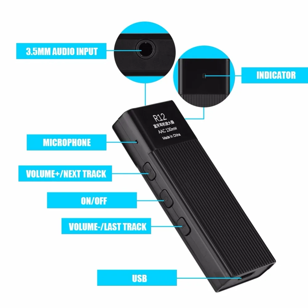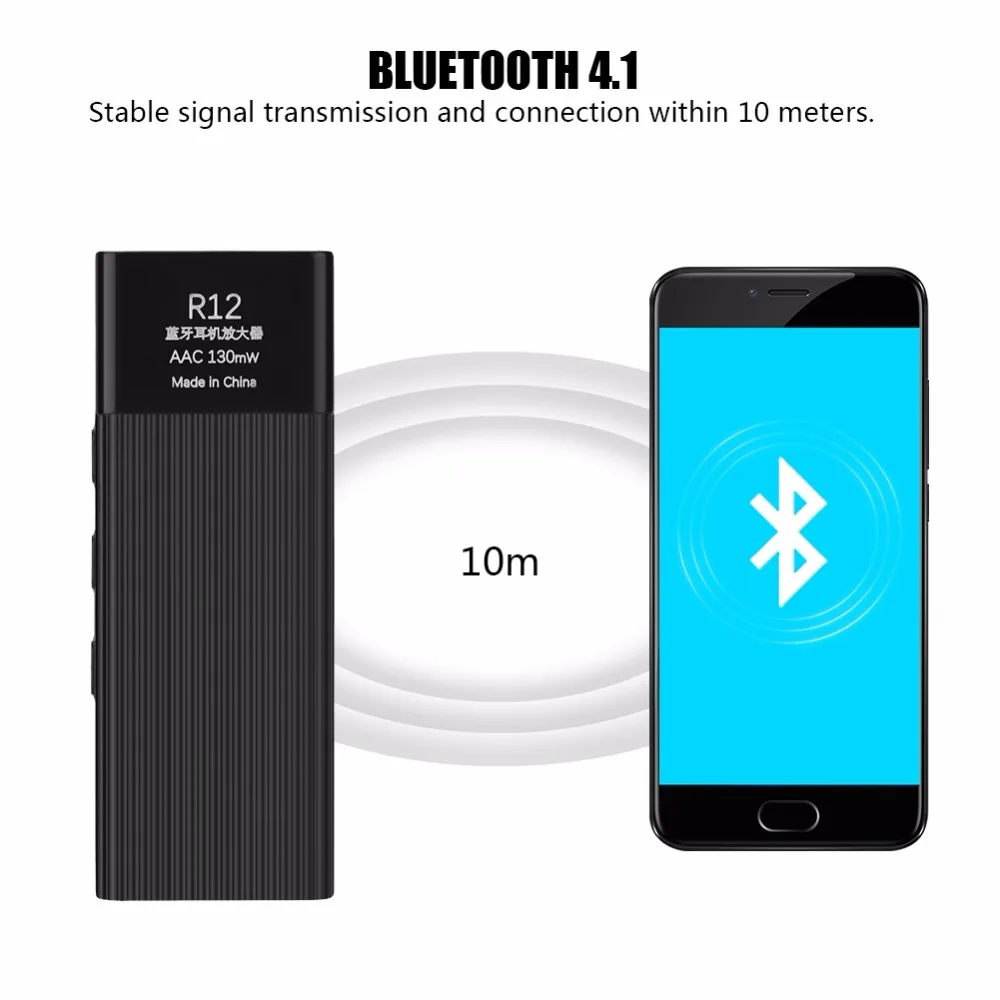 R12 Wireless Bluetooth 4.1 Portable 3.5mm HIFI Headphone Amplifier Mini Stereo Earphone AMP