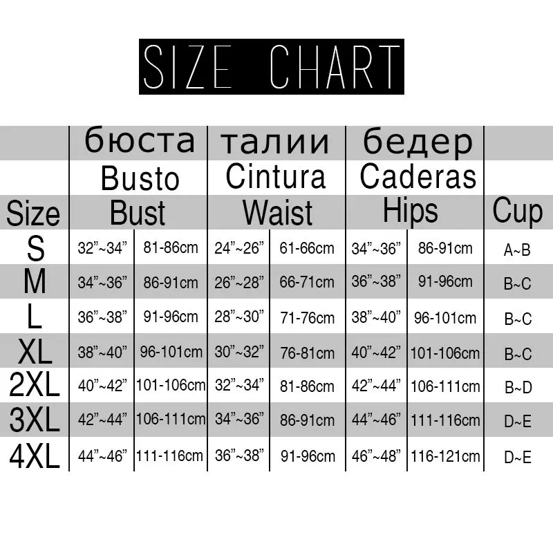 SIZE BUST WAIST HIPS CUP UK&AU SIZE EURP SIZE RUSSIAN SIZE US SIZE