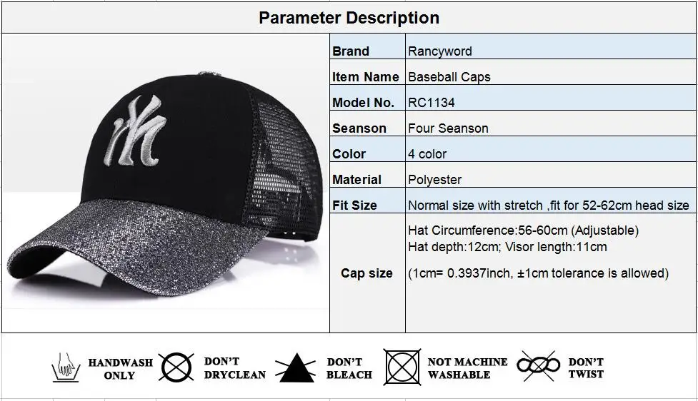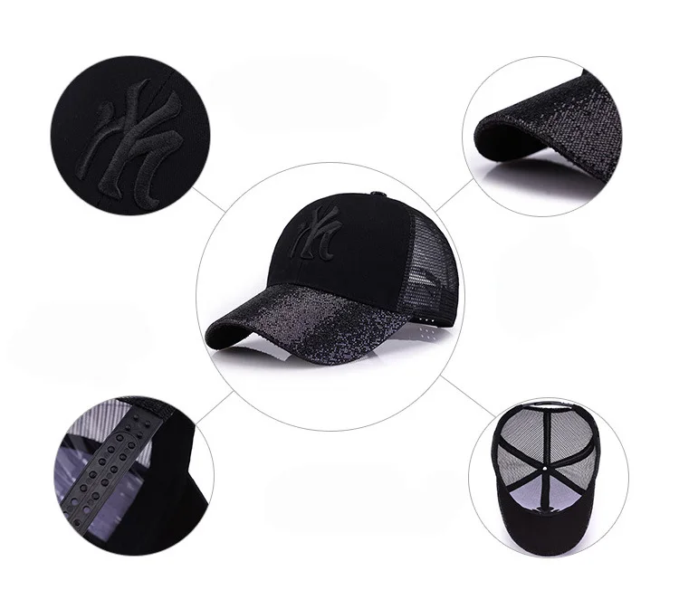 [Rancyword] 2017 New Branded Baseball Caps Canada Women’s Cap With Mesh Bone Hip Hop Lady Embroidery Hats Sequins RC1134