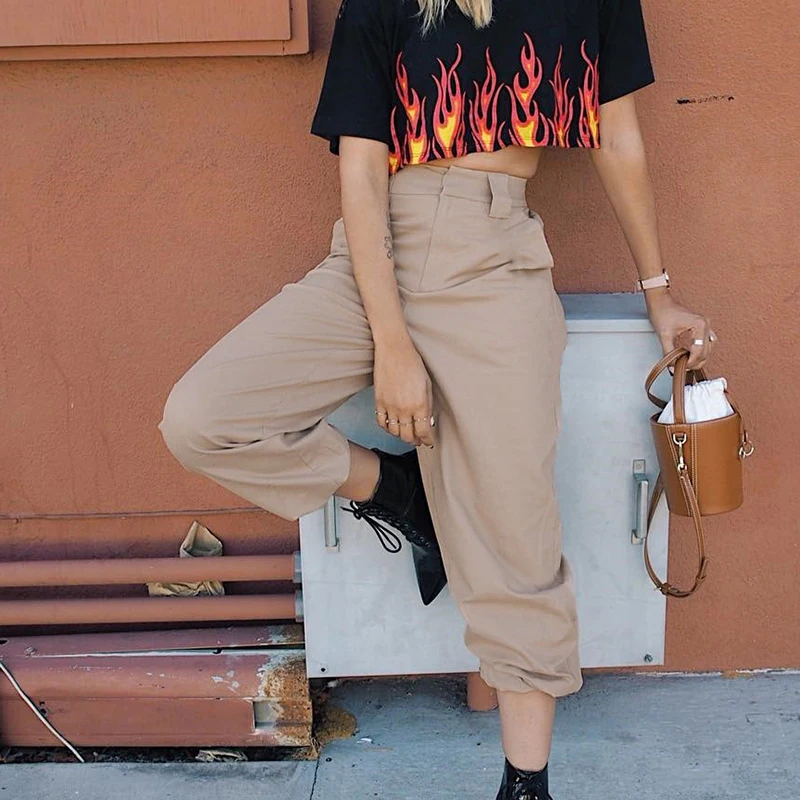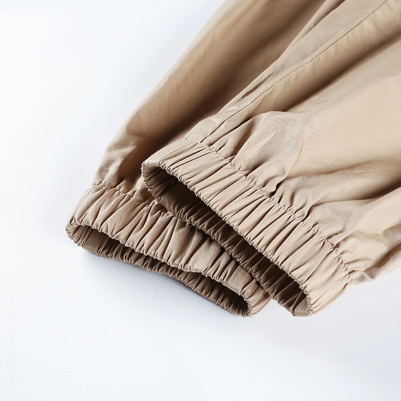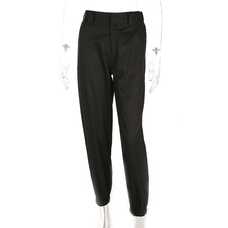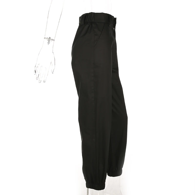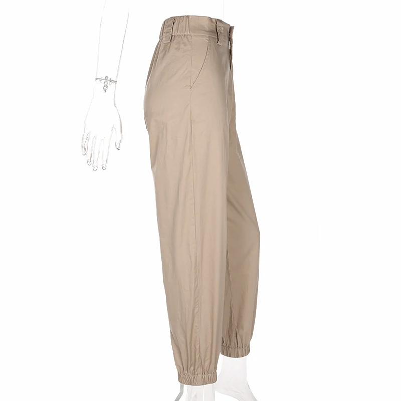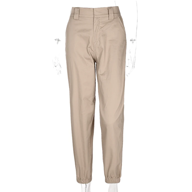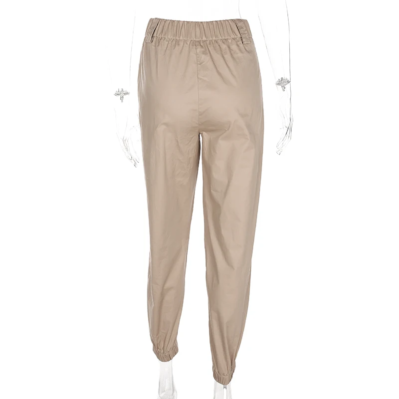 Rapcopter Women High Waist Cotton Casual Pants Solid Elastic Waist Pockets Pencil OL Pants High Street Cargo Ankle-Length Pants