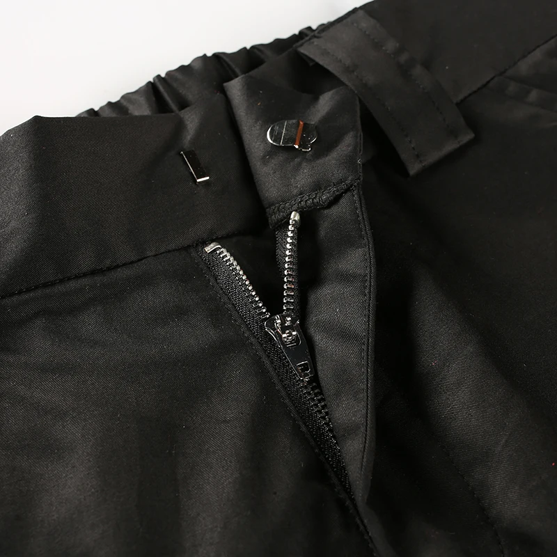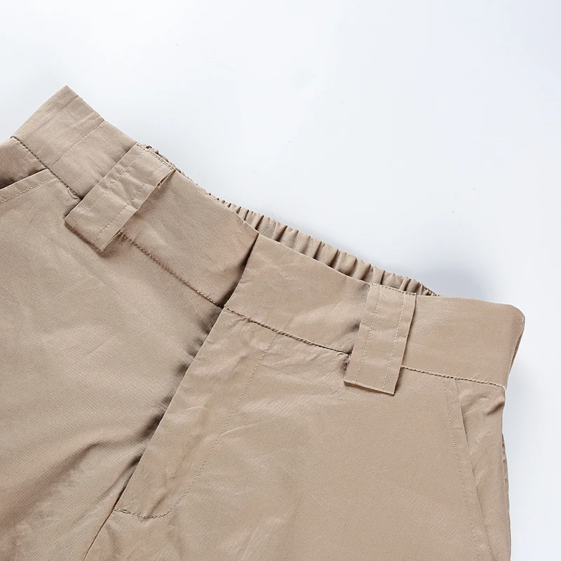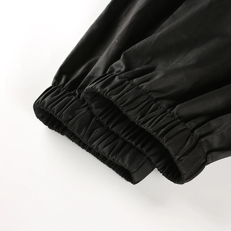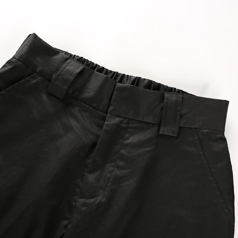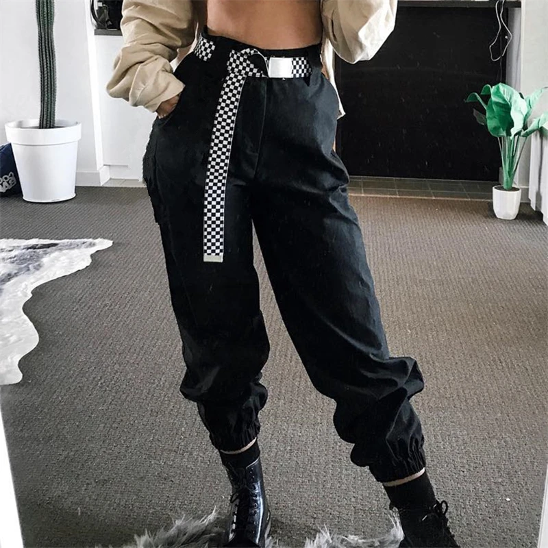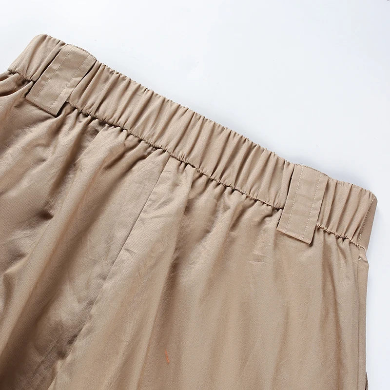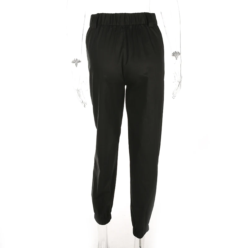 Rapcopter Women High Waist Cotton Casual Pants Solid Elastic Waist Pockets Pencil OL Pants High Street Cargo Ankle-Length Pants