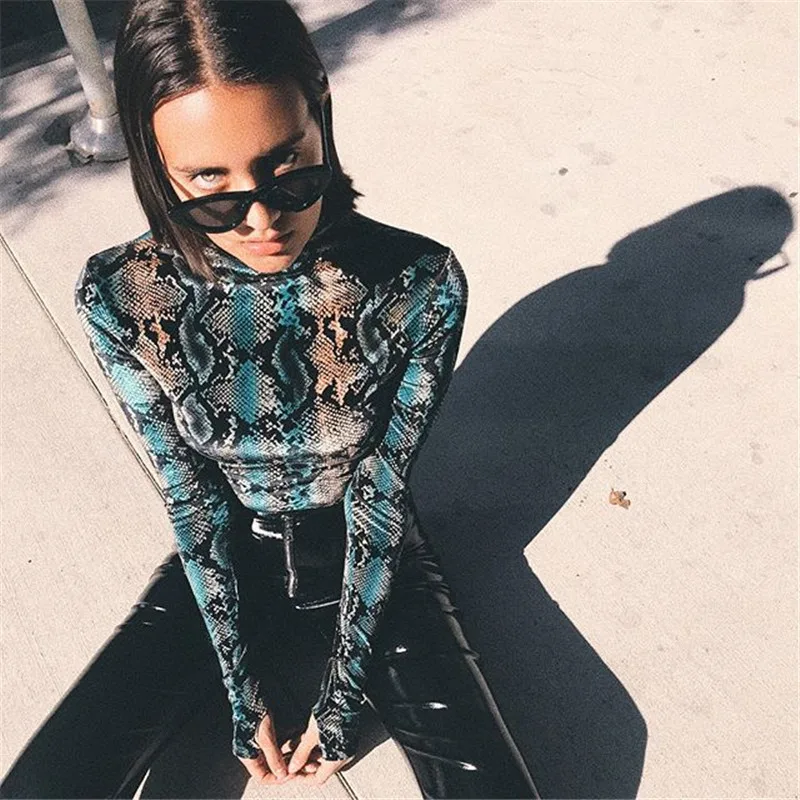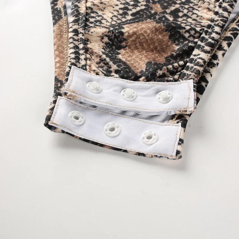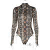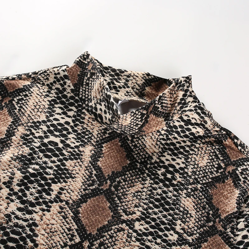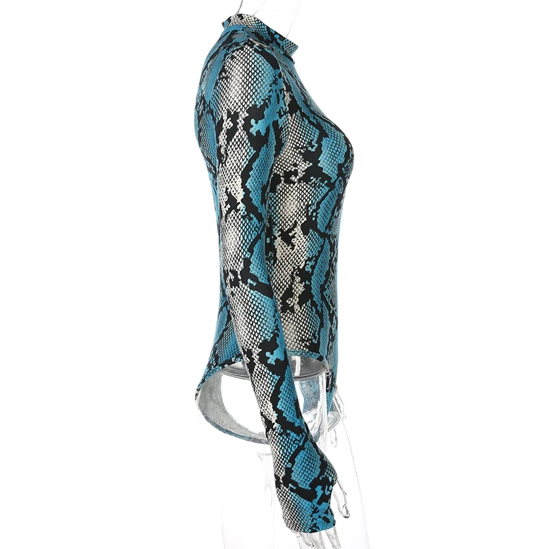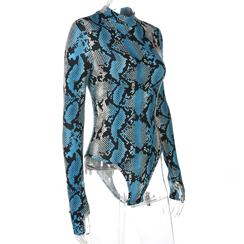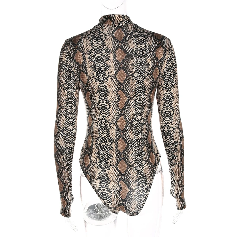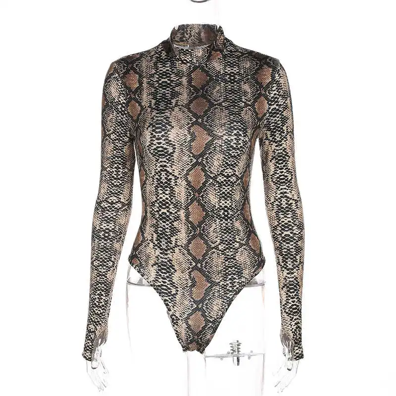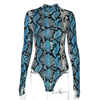 Rapcopter Women Sexy Bodycon Snake Skin Bodydusit Autumn Winter Long Sleeve Turtleneck Bodysuits Casual Skinny Workout Romper