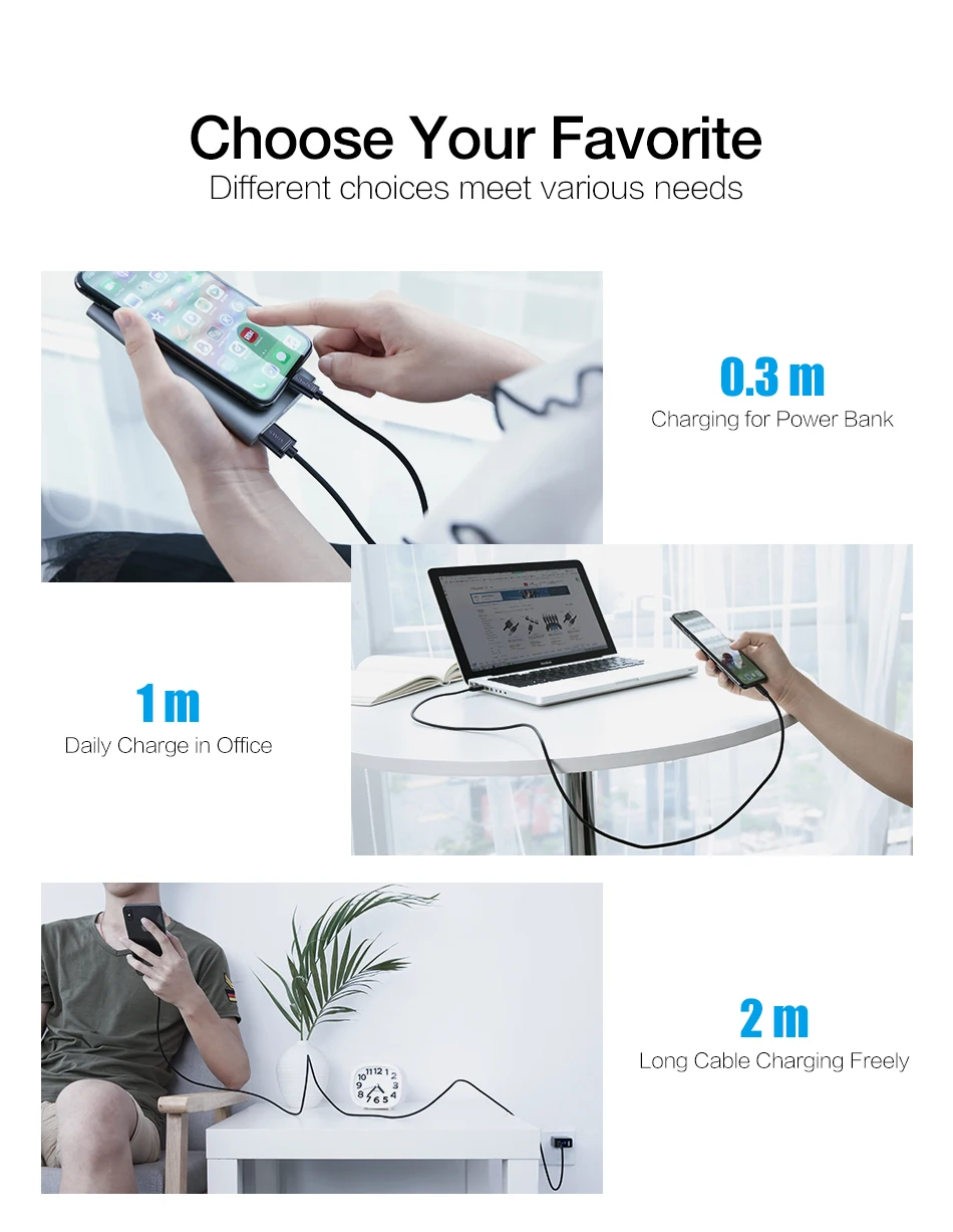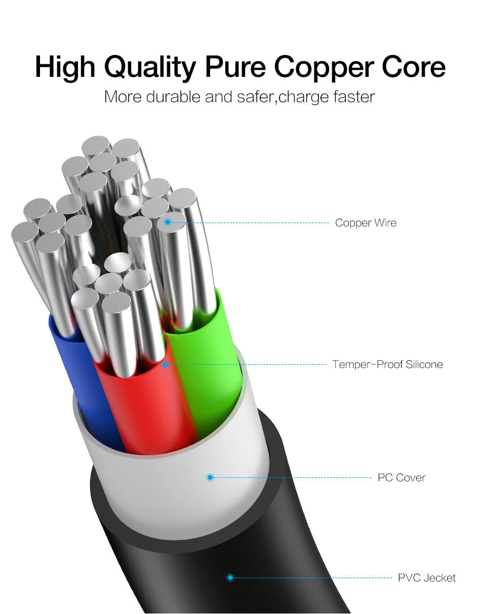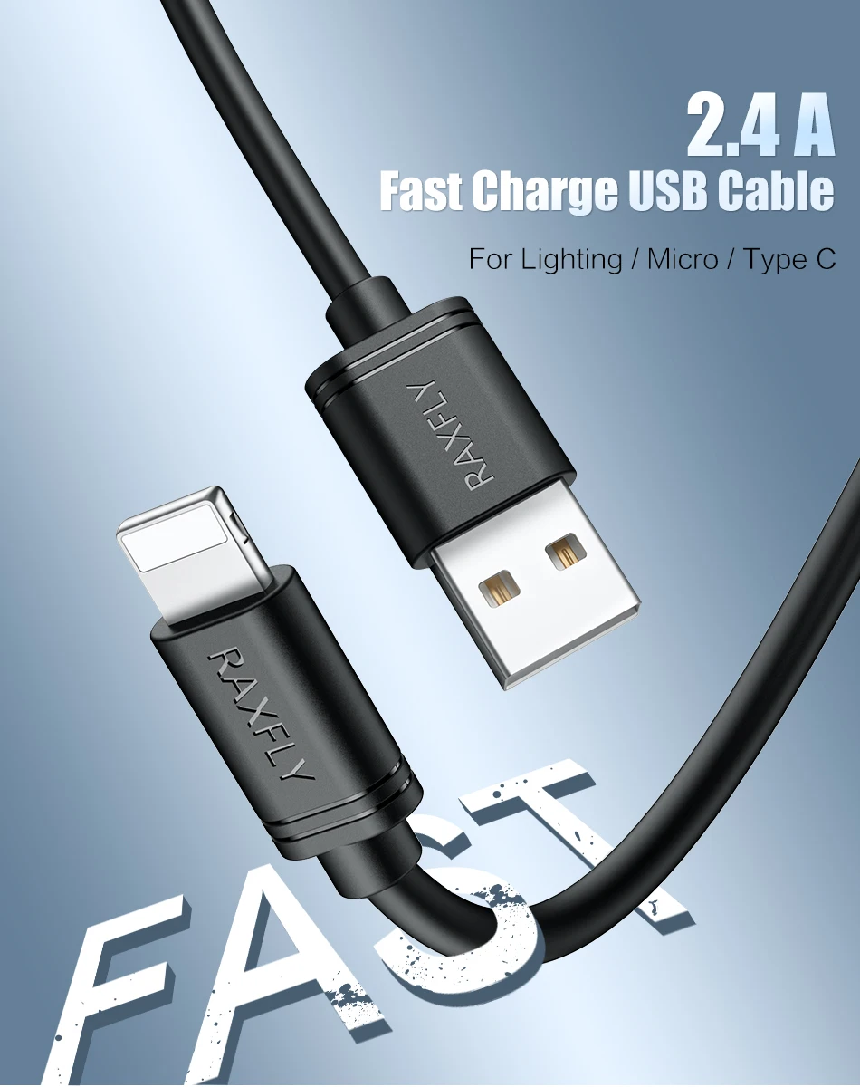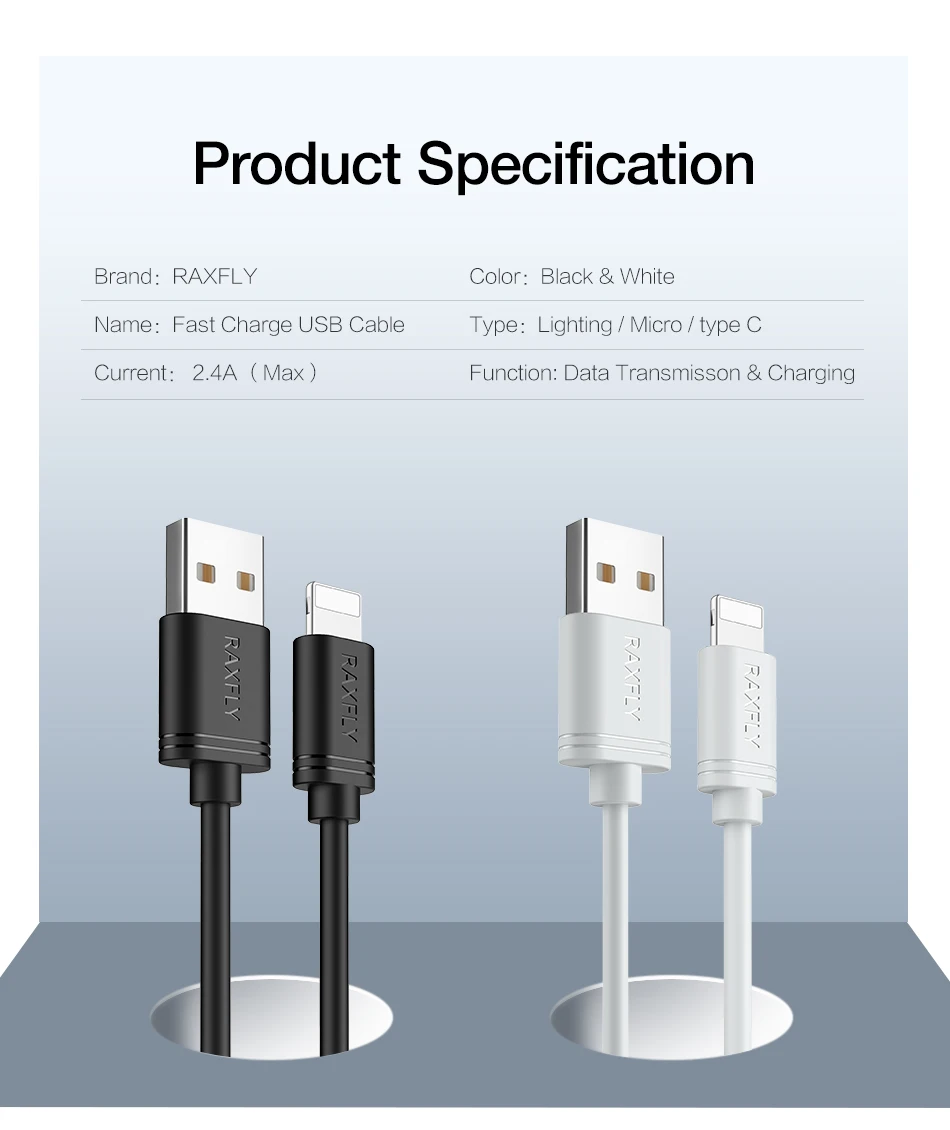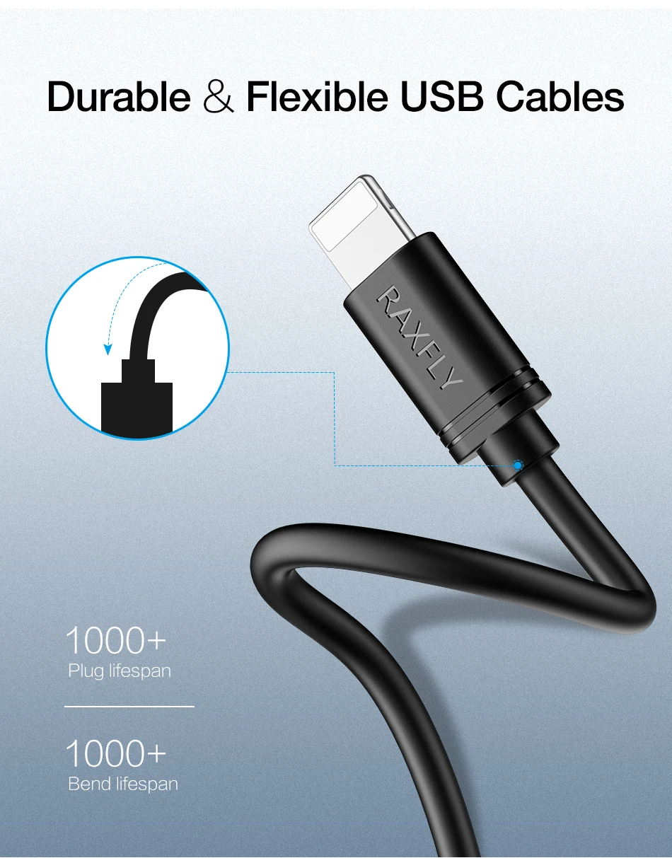 RAXFLY PVC USB Cable For iPhone Lightning to USB Wire
