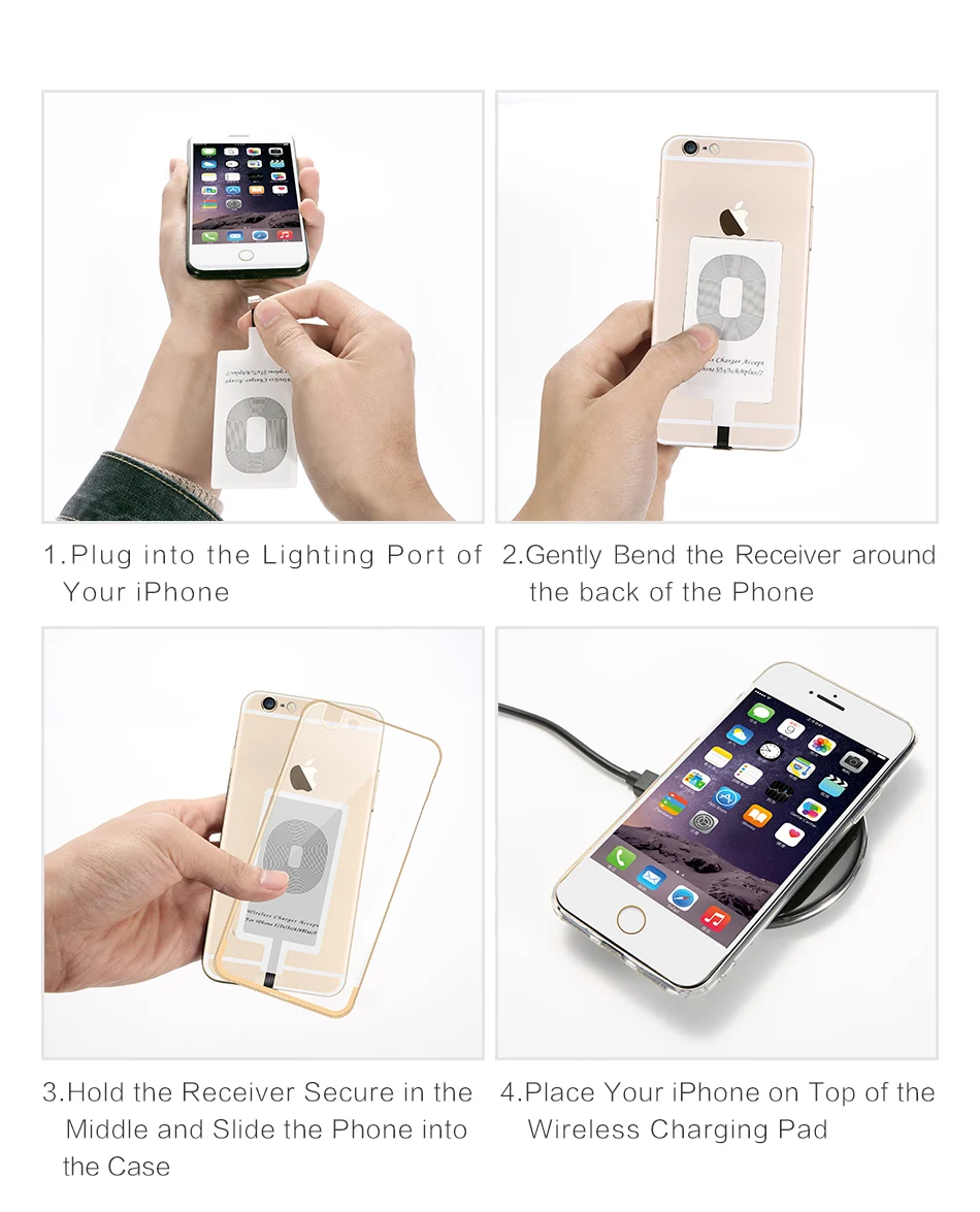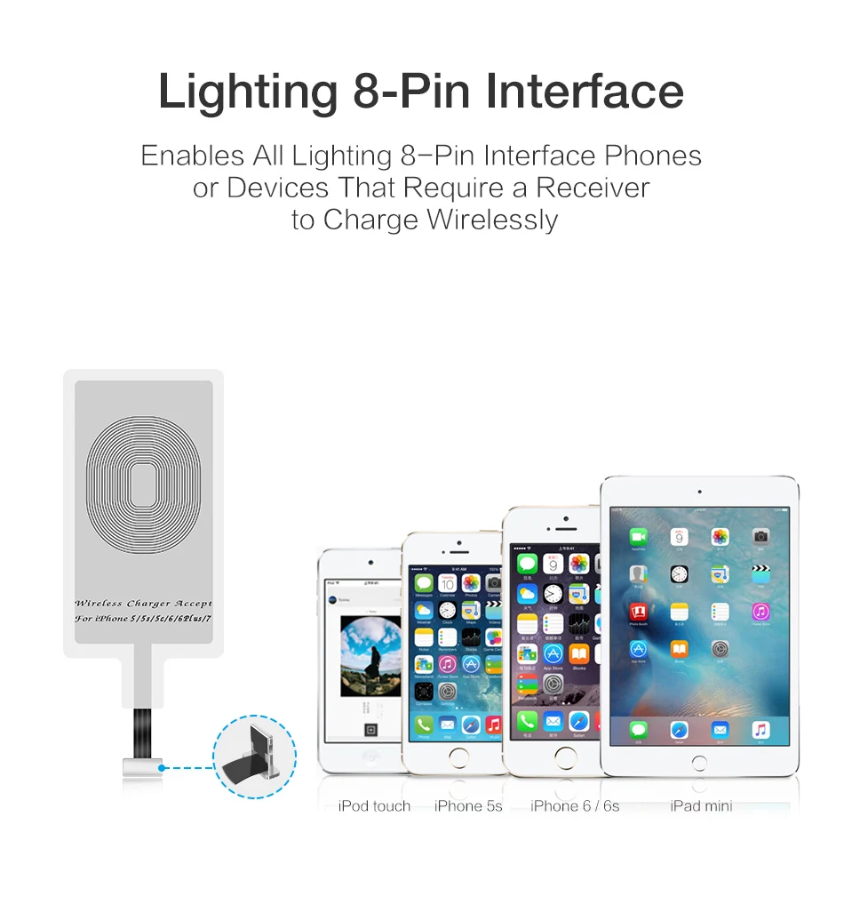 RAXFLY QI Wireless Charger Receiver For iPhone 5s 7 6 Plus Universal Wireless Charging Receiver for Micro USB Type-c Phone