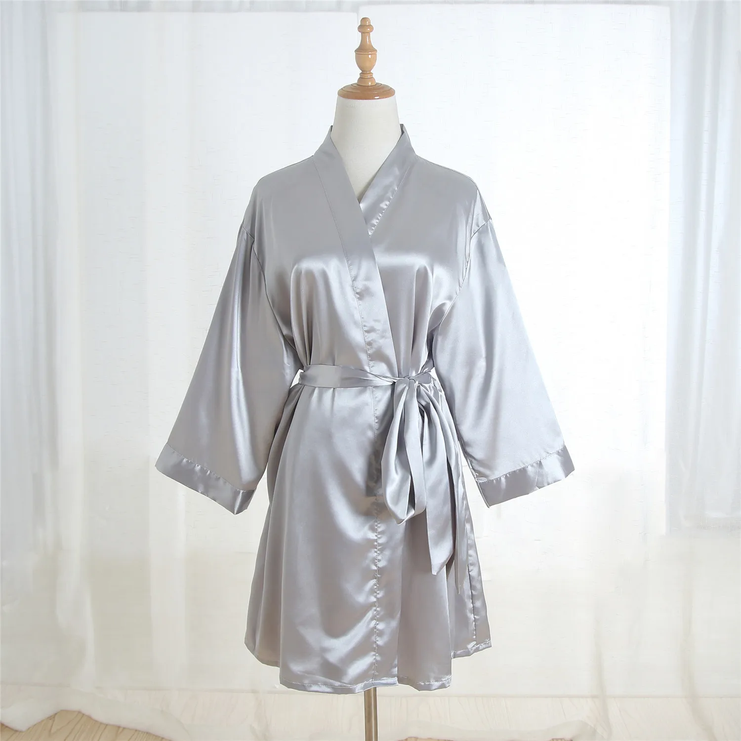 Rayon Kimono Bathrobe GREY Women Robe Summer Bride Bridesmaid Dressing Gown Sexy Sleepwear Sleep Dress Wedding Gift Nightgown
