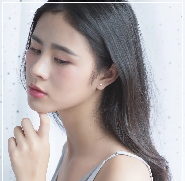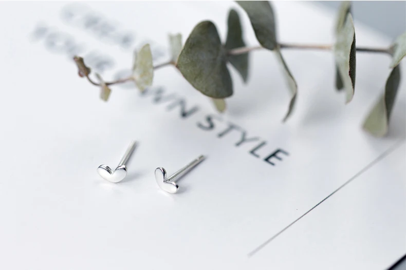 Real 100% 925 Sterling Silver Heart Stud Earrings For Women Female Authentic Original Jewelry