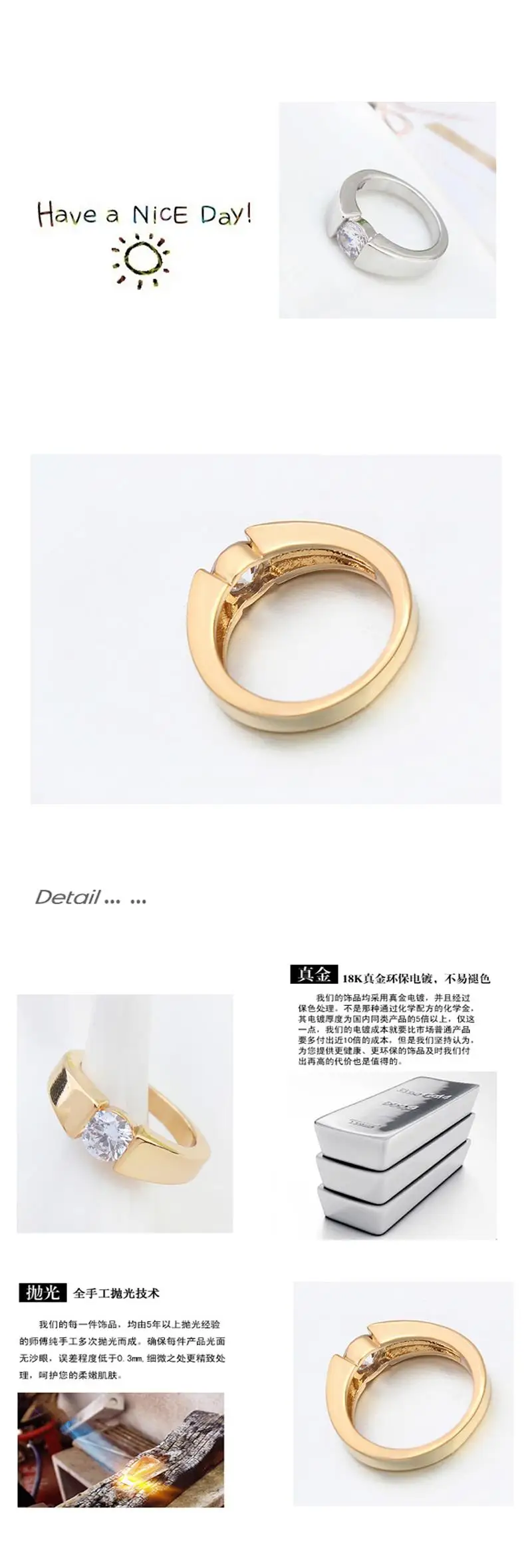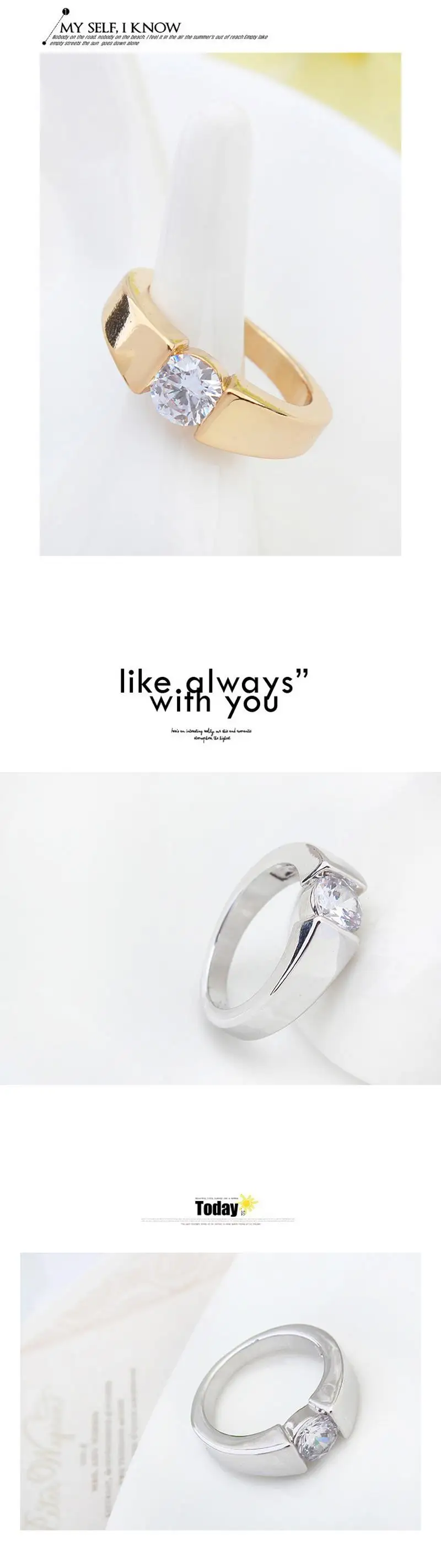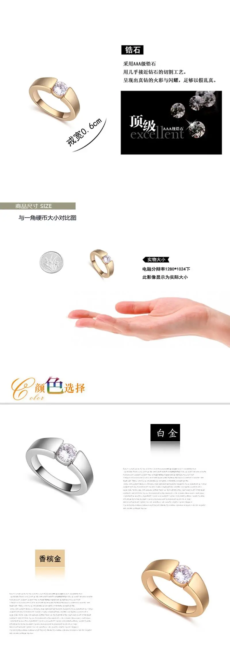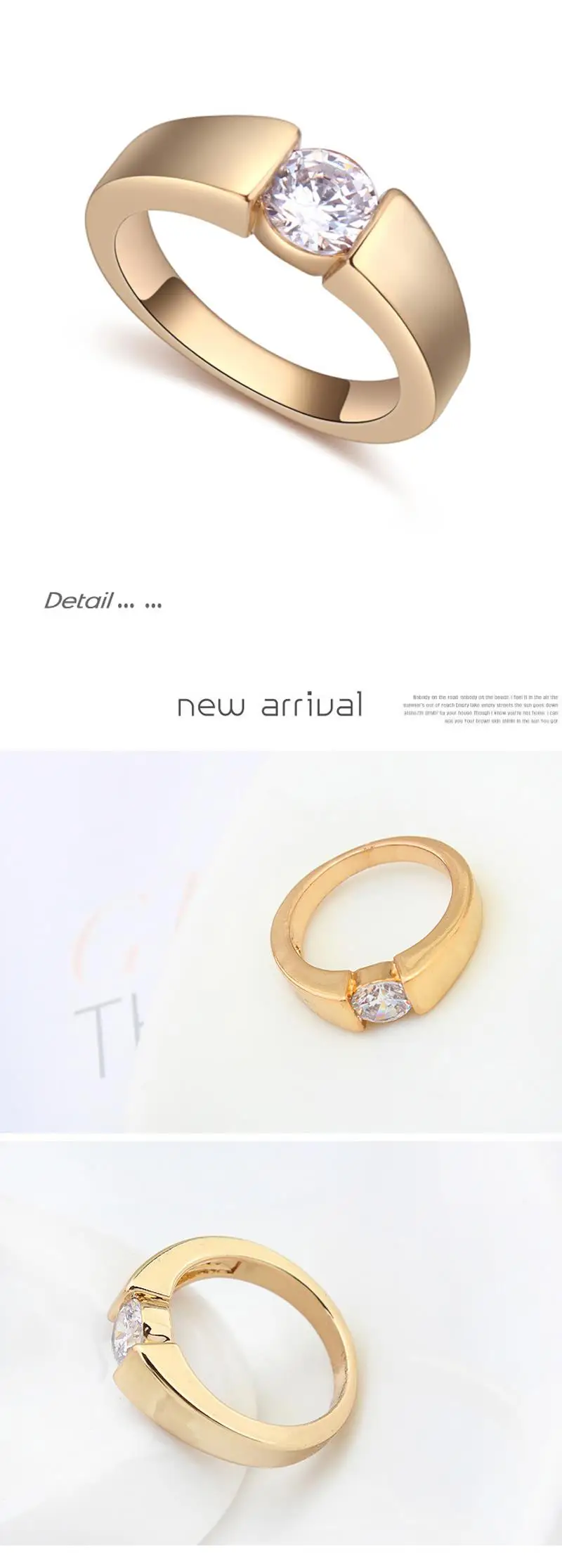 Real AAA Zirconia Micro Inlays Champagne gold Color Ring for women New Sale Hot Round