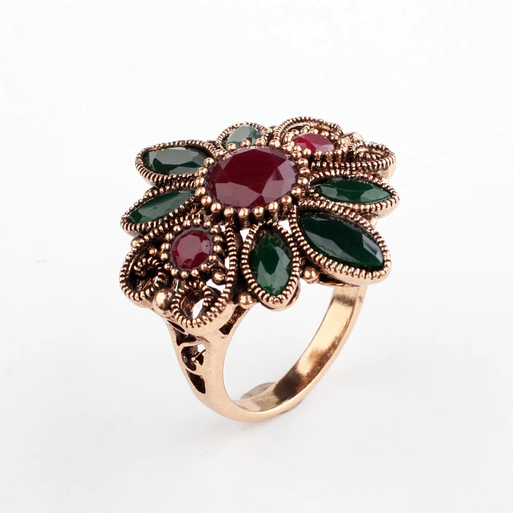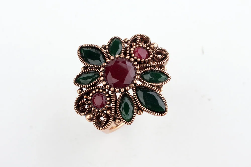 Real Austrian Crystals Bohemian Sun Flower Rose Gold Color Vintage Rings For women Top Sale New #RB04208