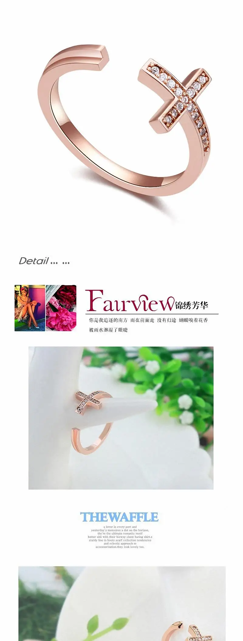 Real Austrian Crystals Brand gold Color AAA Zirconia Micro Inlays Fashion Ring for women New Cross 109732Rose