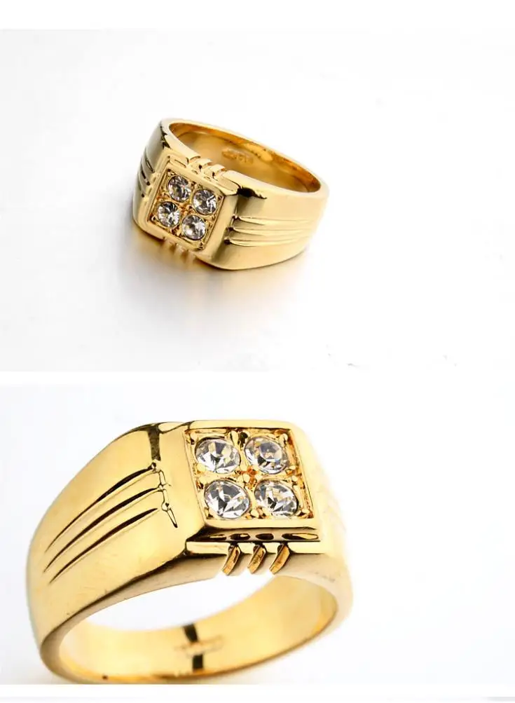 Real Brand TracyKwok Rings for men Genuine austrian crystal Gold Color Fashion wedding ring New Sale Hot #RG90044