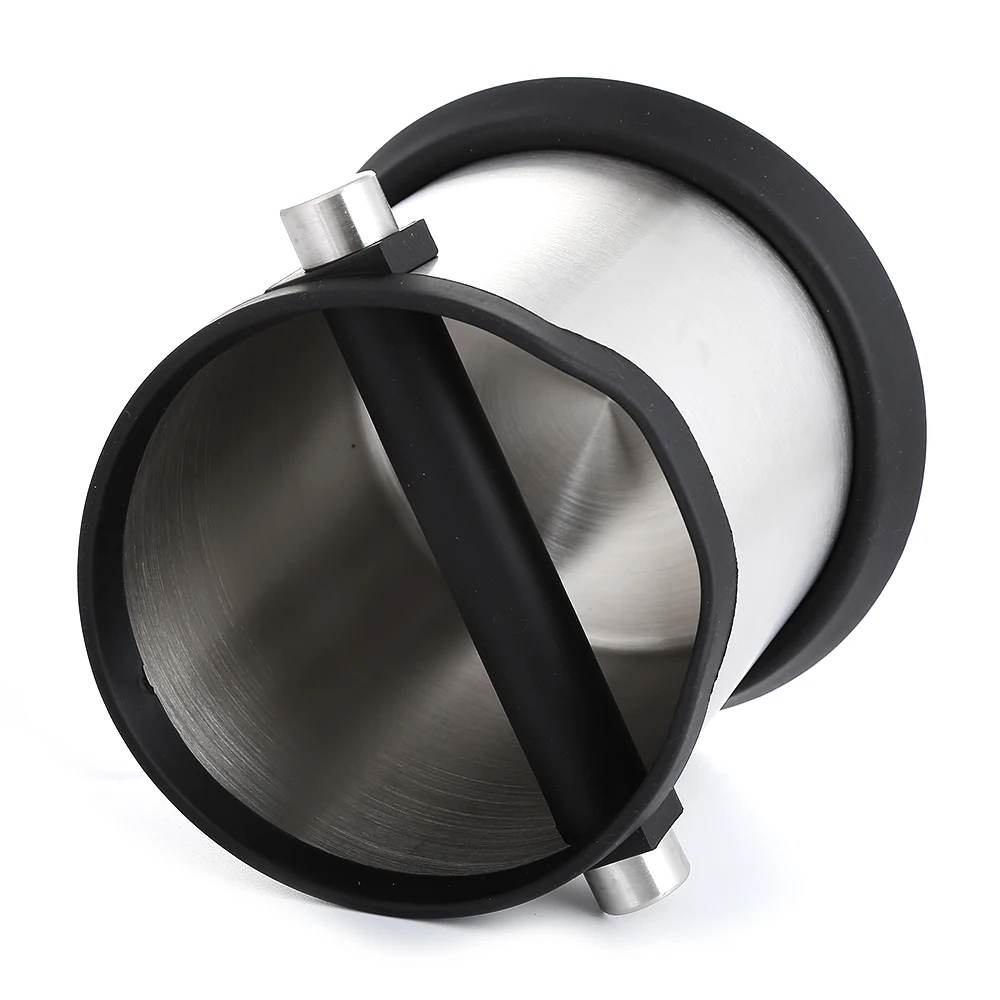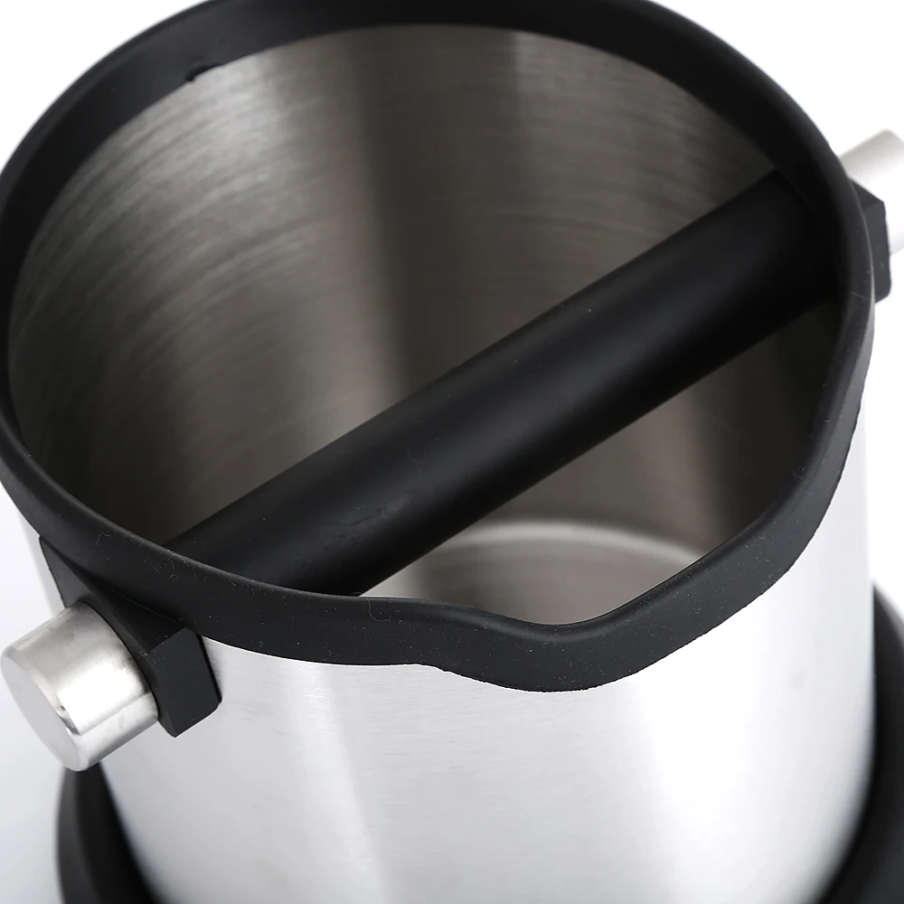 Realand Stainless Steel Shock-Absorbent Espresso Knock Box Anti Slip Coffee Grind Dump Bin Waste Bin with Detachable Knock Bar for Barista