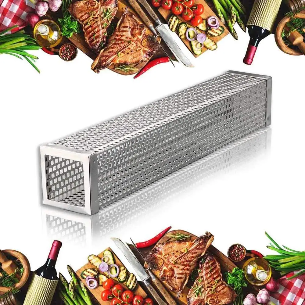 Realand Square 6/12 inches BBQ Wood Pellet Smoker Tube Stainless Steel Smoke Generator Mesh Pipe for Grill Hot or Cold Smoking