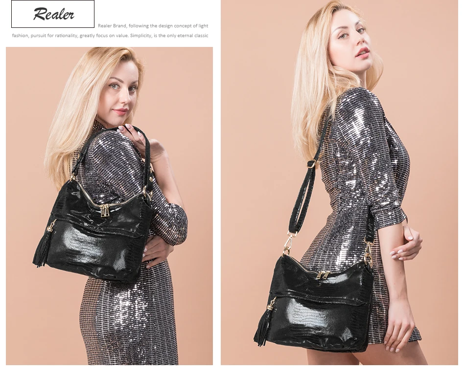 REALER shoulder bag women Tassel handbags high quality hobo bag ladies artificial leather crossbody bags female animal prints
