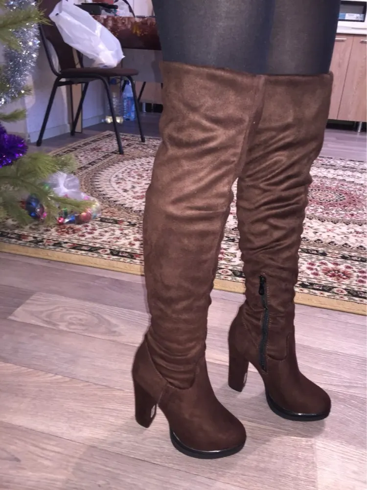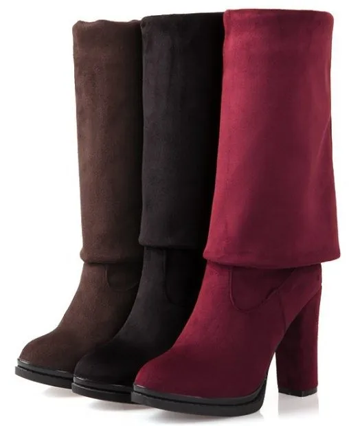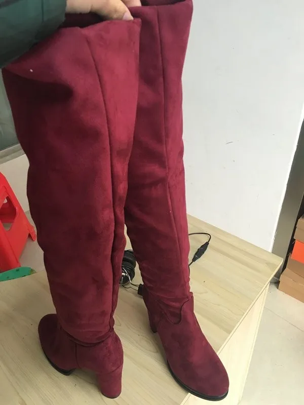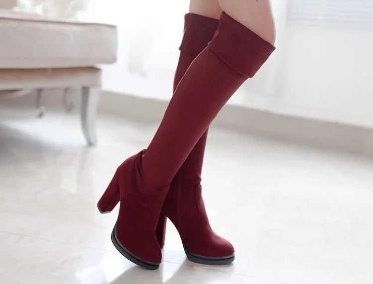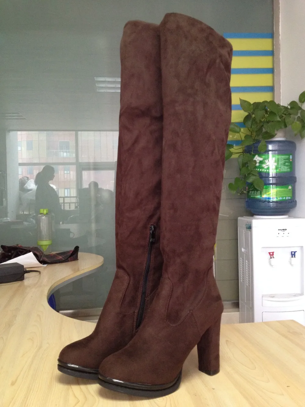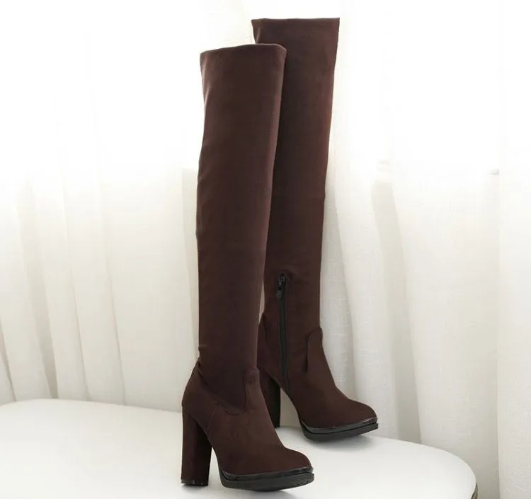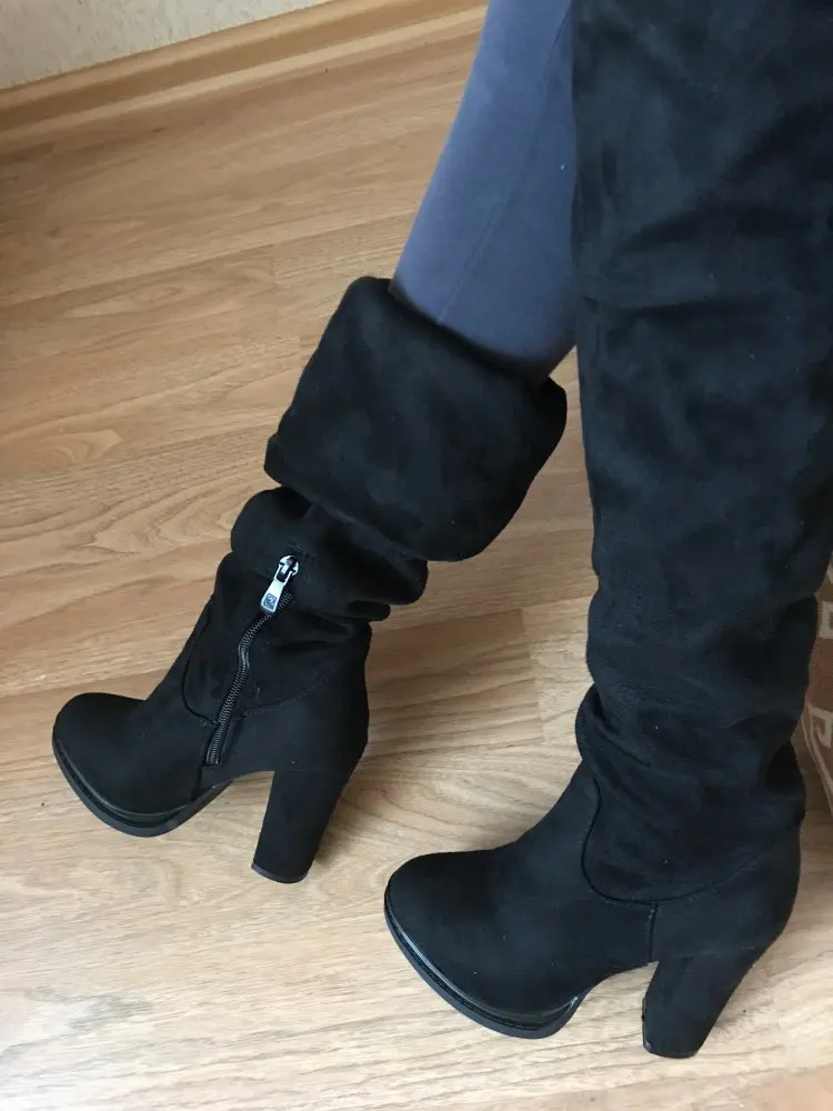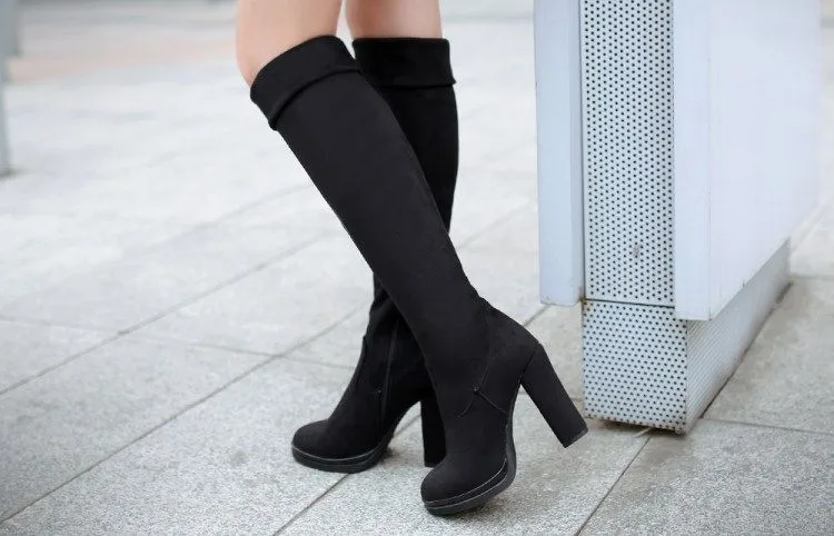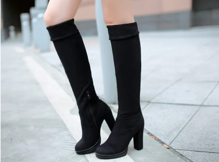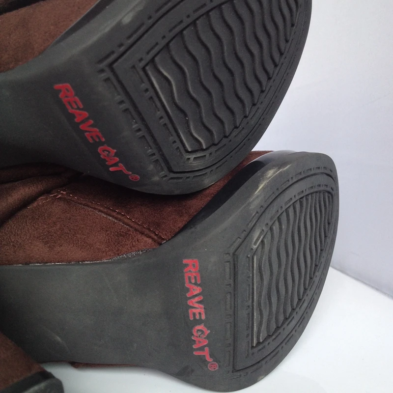 REAVE CAT New Plus size 32-43 Women boots Autumn Winter High Knee boots Sapatos femininos High heels Flock Zipper Black QH3221
