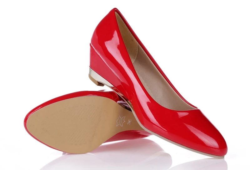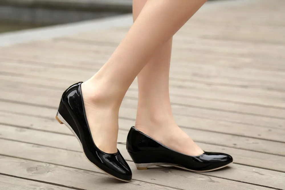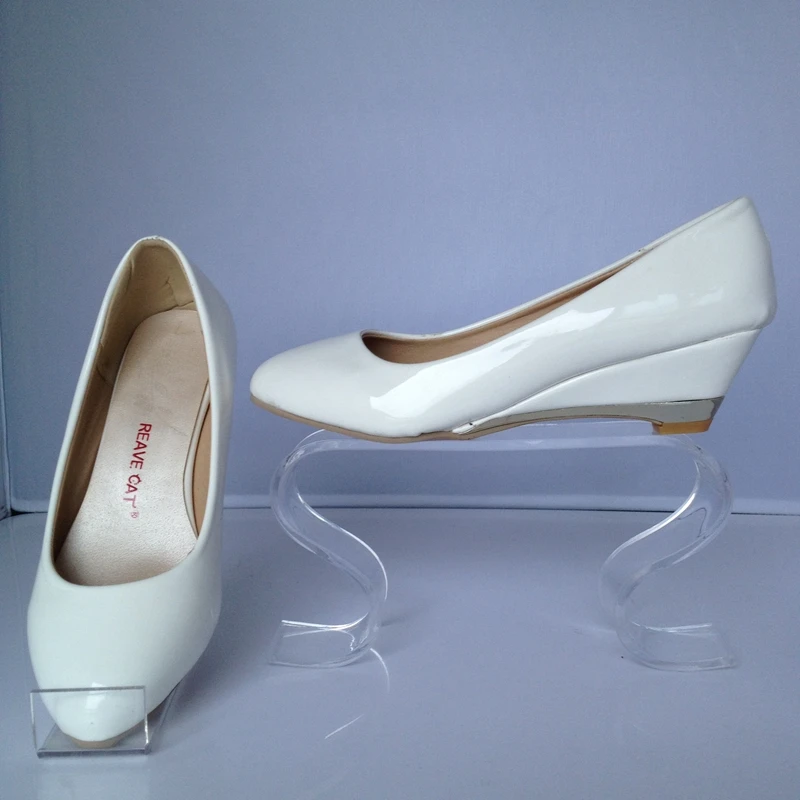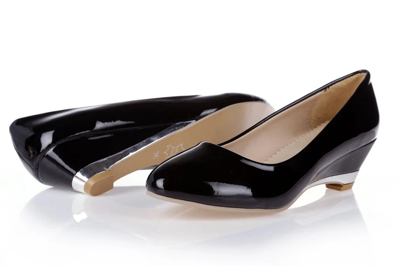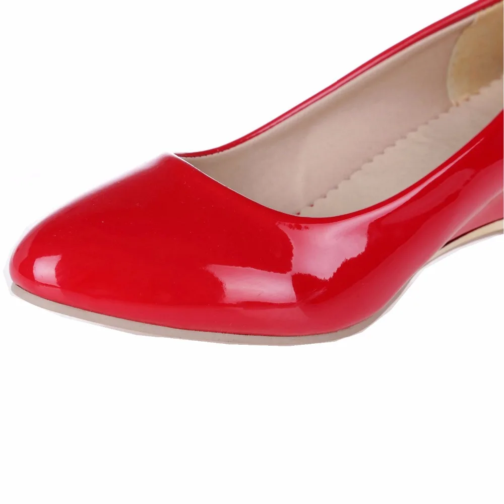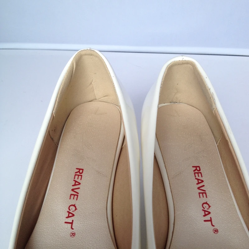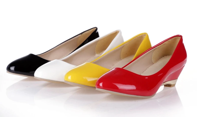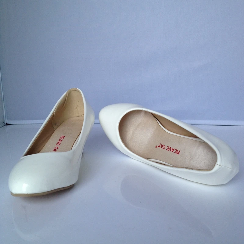 REAVE CAT Plus size 30-48 Spring autumn Women’s shoes Wedges Low heels Pumps Patent Pointed toe White Red Yellow Black QL3958