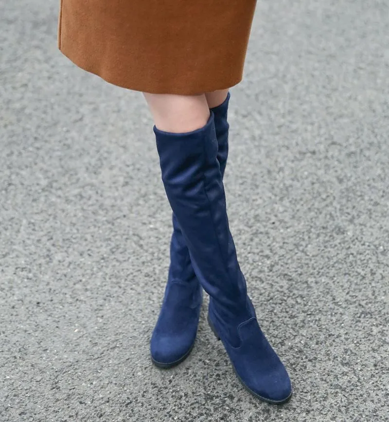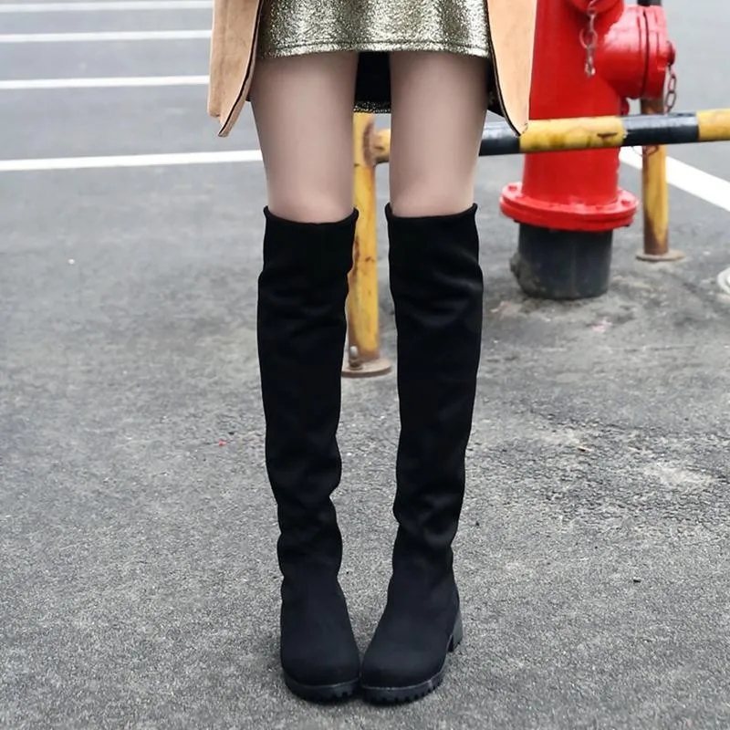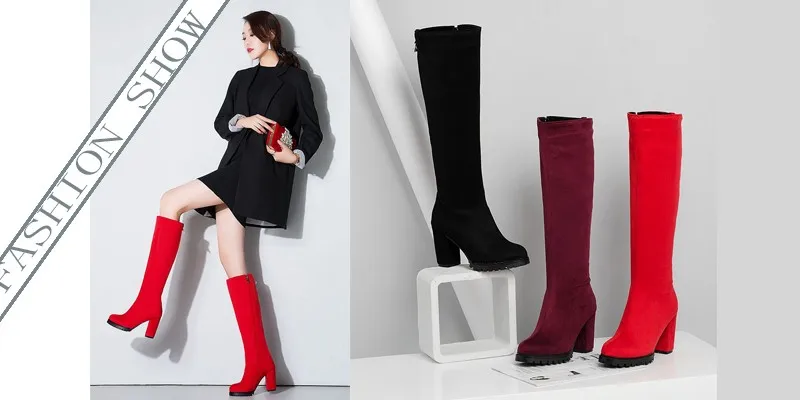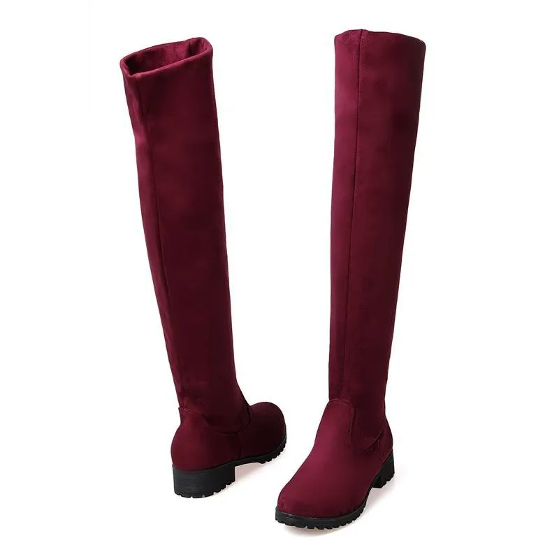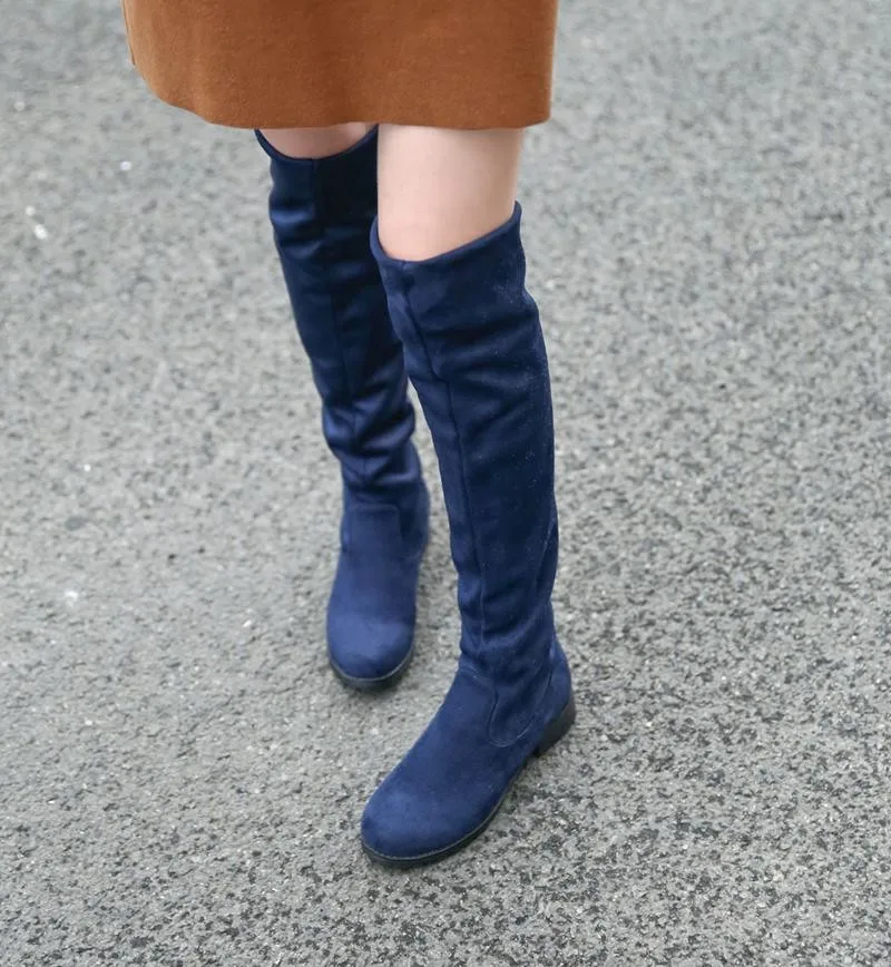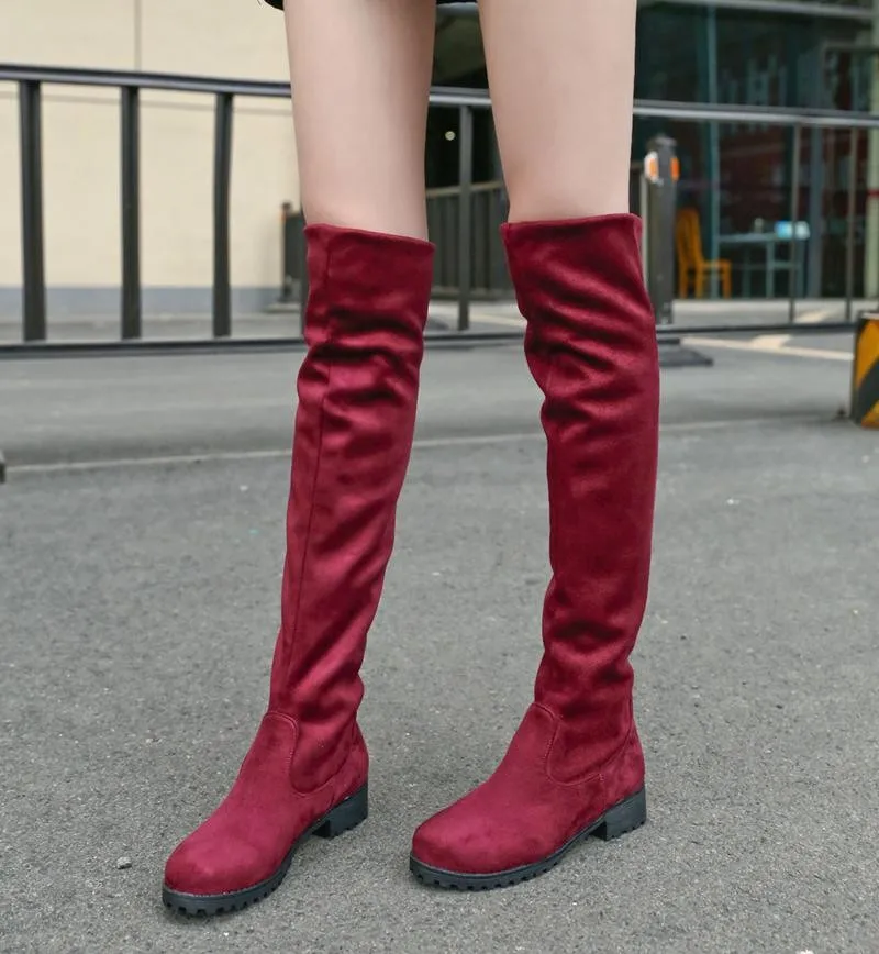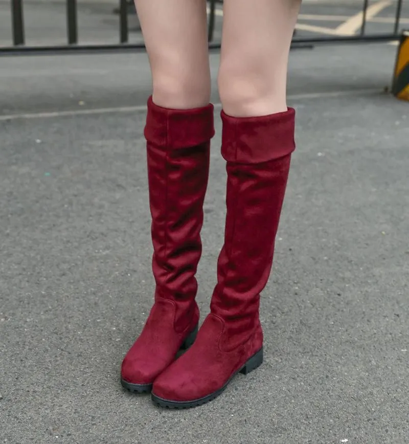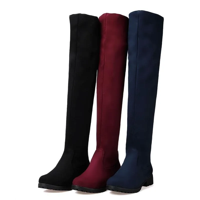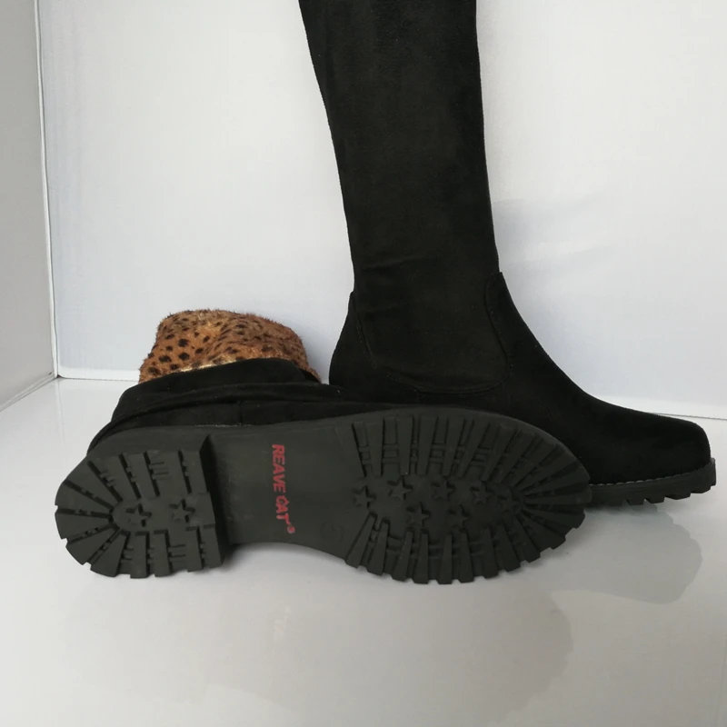 REAVE CAT Plus size 32-43 Women boots Over the knee Flats boots Sapatos femininos Flock Black Blue Red Fashion Casual PH049