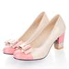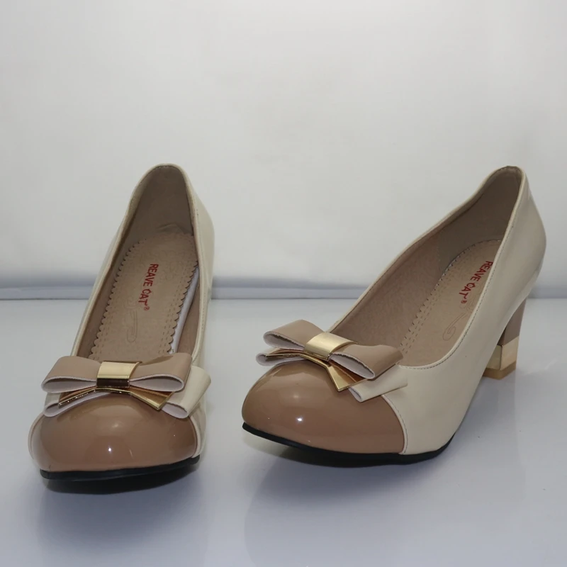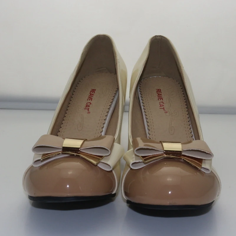 REAVE CAT Plus size 34-43 Hot 2017 Candy Color Women Pumps Shallow Color Block Thick High Heels Shoes Bowtie Pink Working Shoes