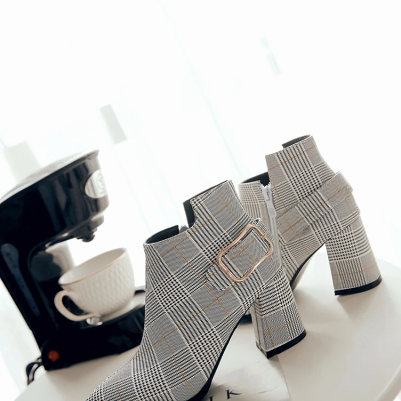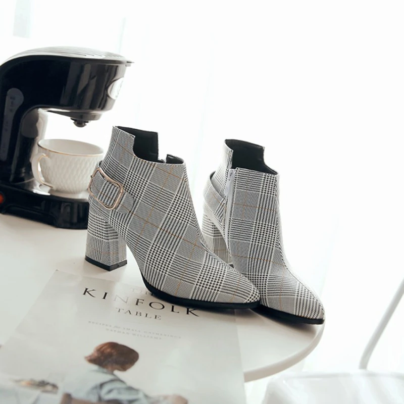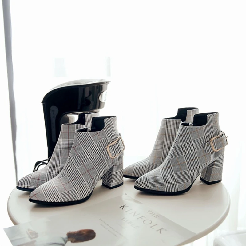 REAVE CAT Shoes big size Spring Autumn Pointed Toe Thick heel Women ankle boots Ladies chaussures femme bottes femme bottines