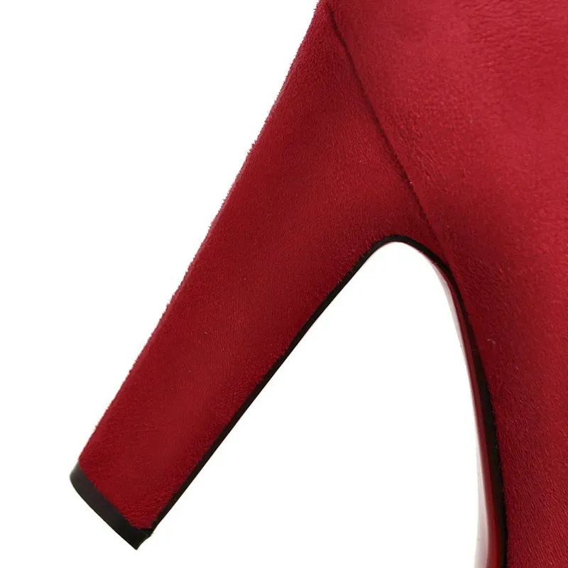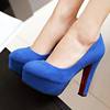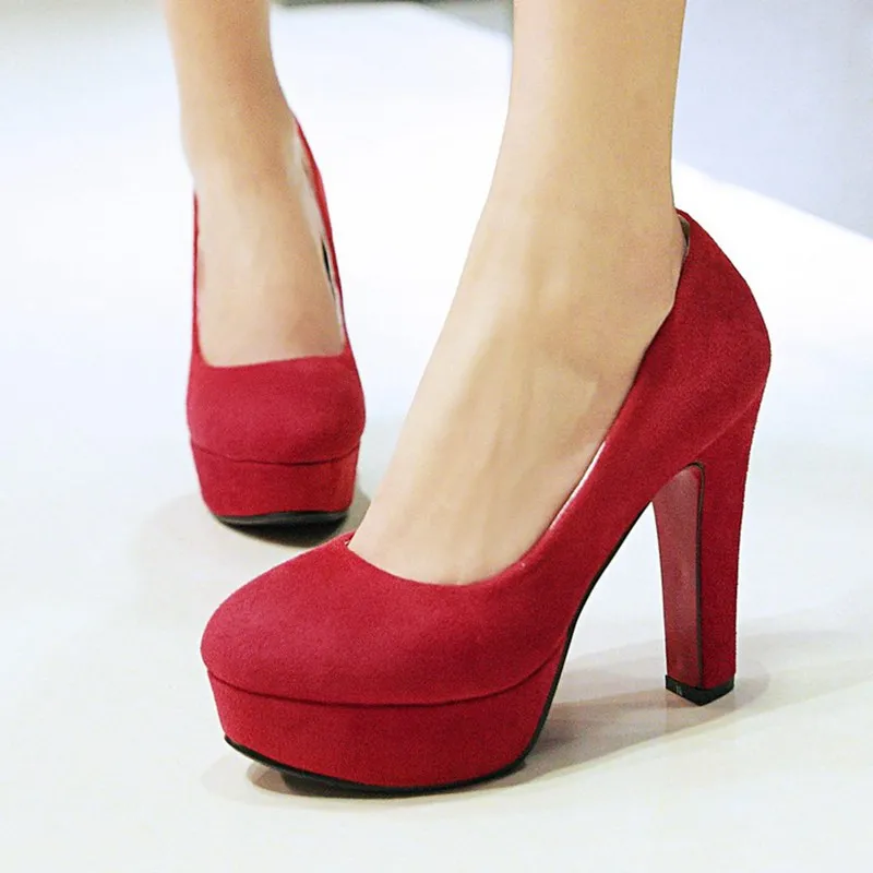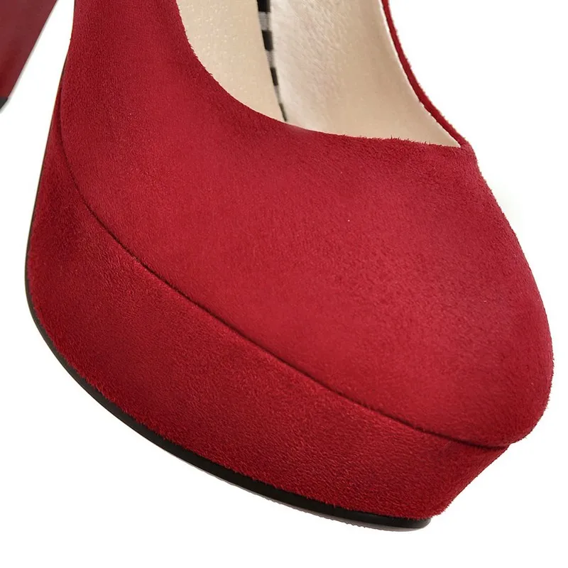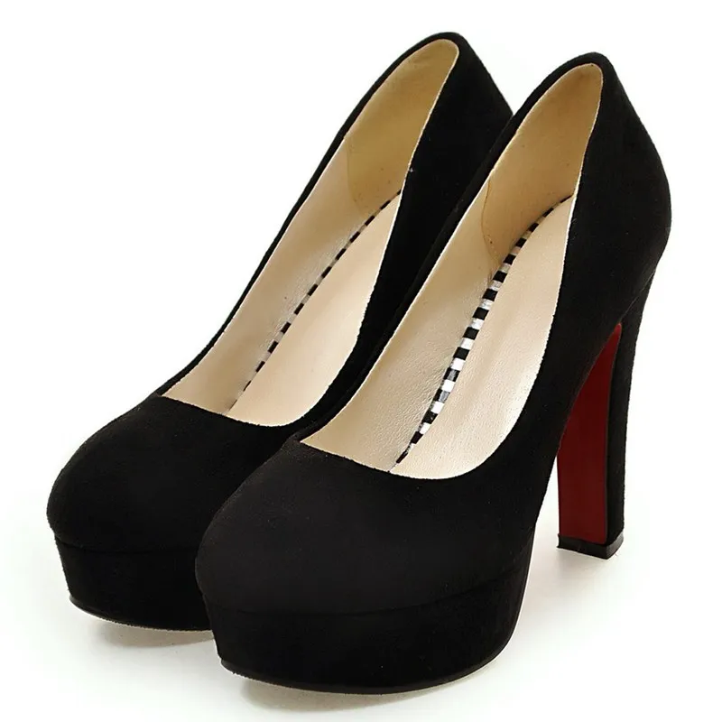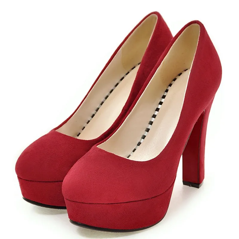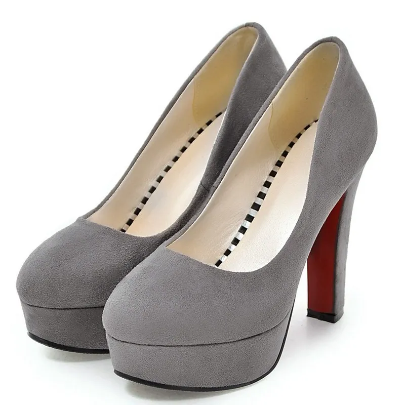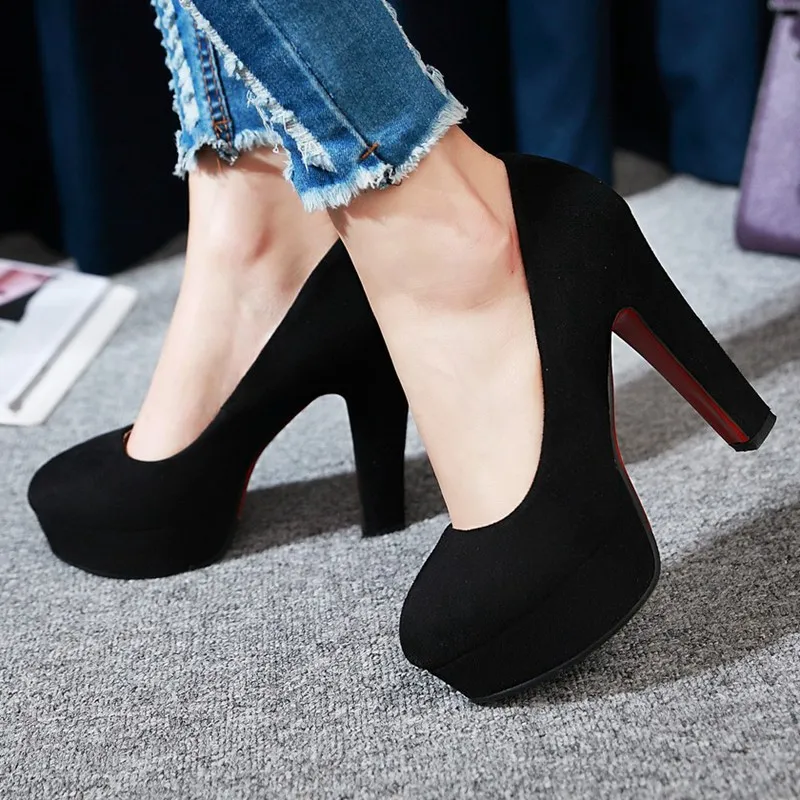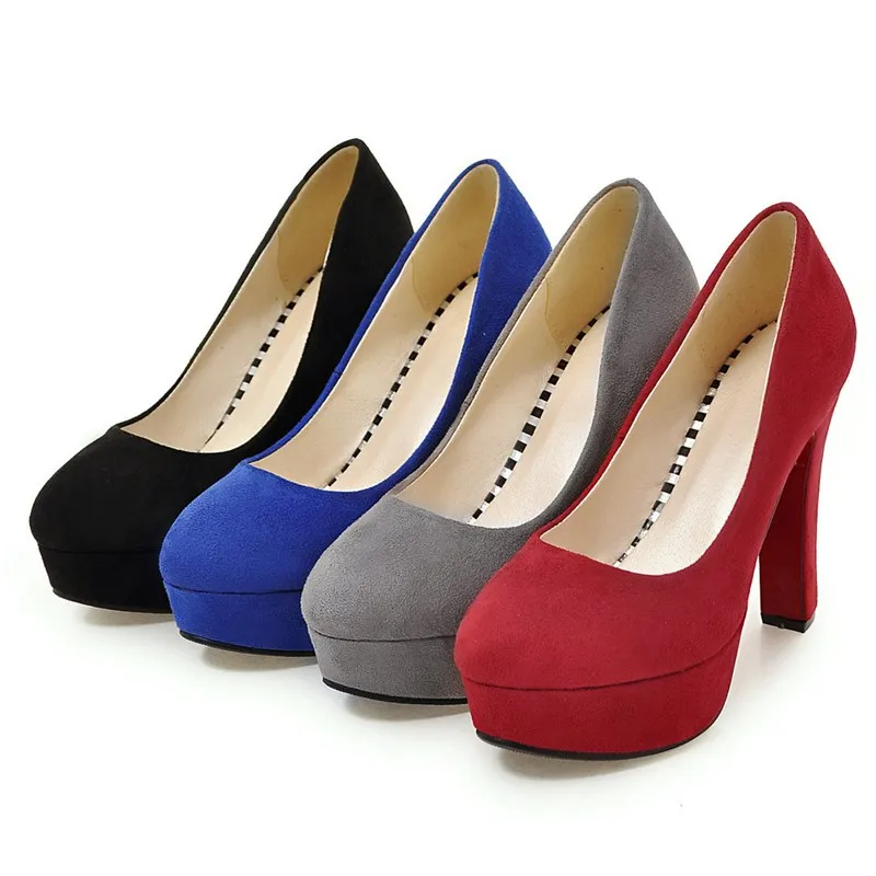 REAVE CAT Shoes women High heels Ladies pumps Platform Flock Round toe Thick high heels Plus size 32-43 Black Red Grey Blue A305