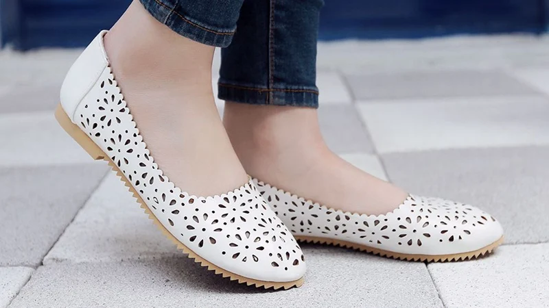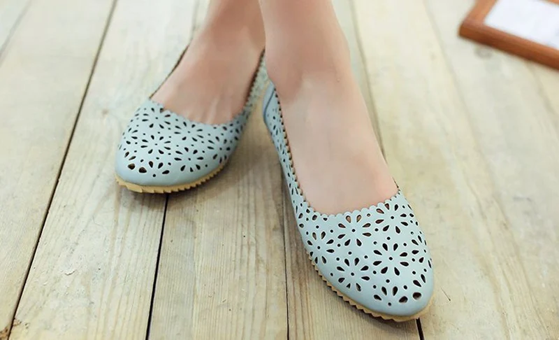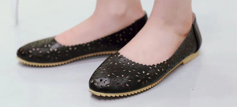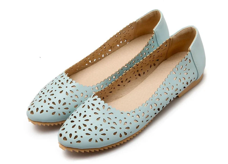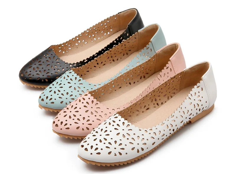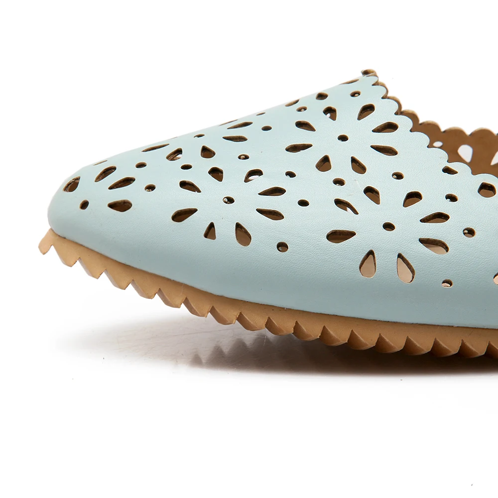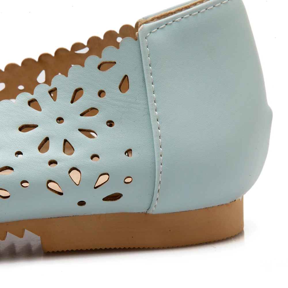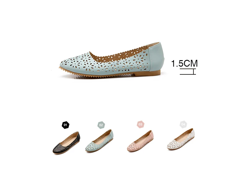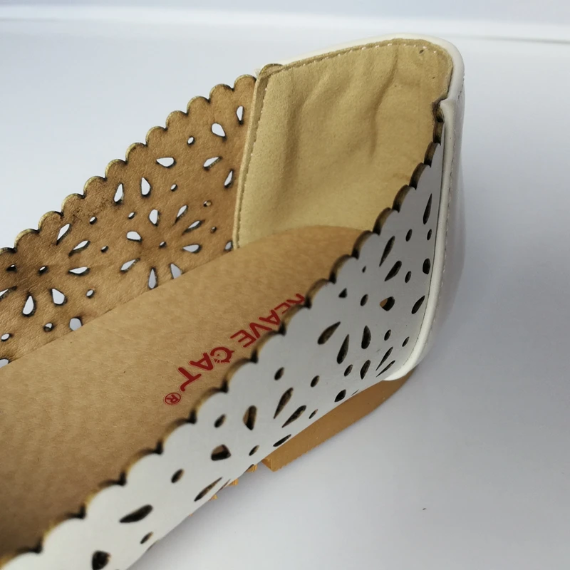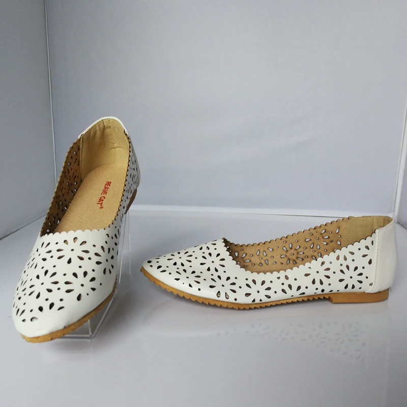 REAVE CAT Women flat Ladies summer shoes Cut out Female mujer Round toe Flower Low heel Big size 40 41 42 43 44 45 46 47 Cute