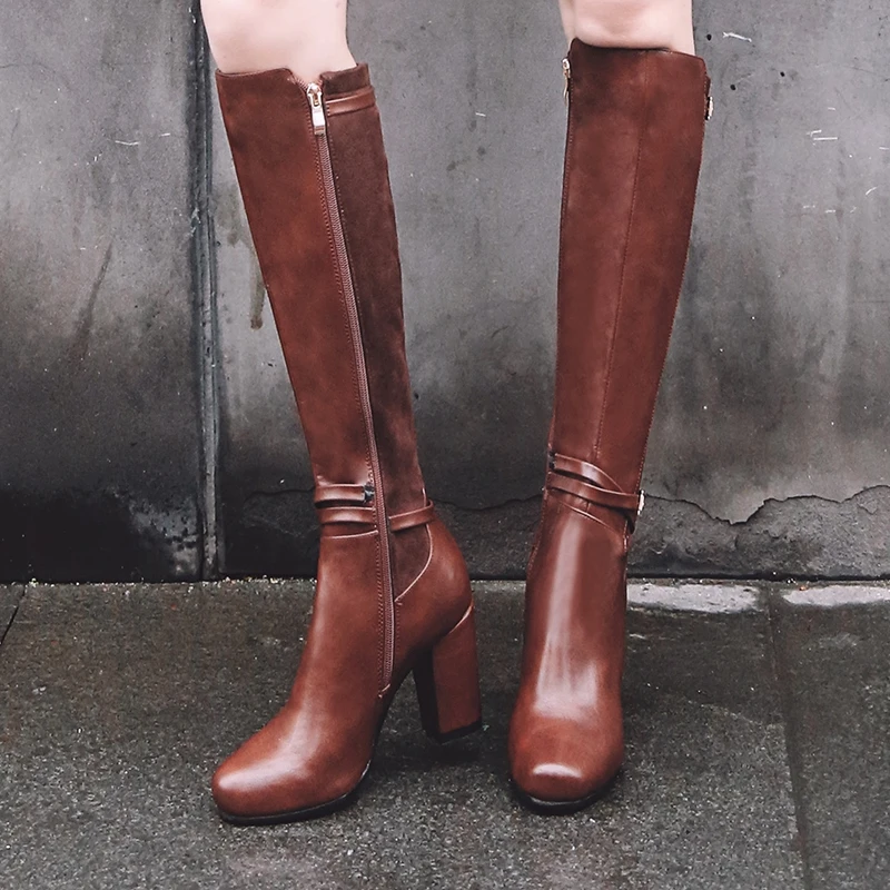 REAVE CAT Women knee-high boots Stretch Back Winter warm Round toe Fashion botas Quality footwear shoes Zipper Thick Heel A956