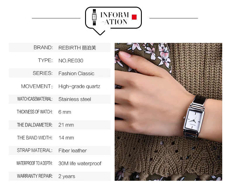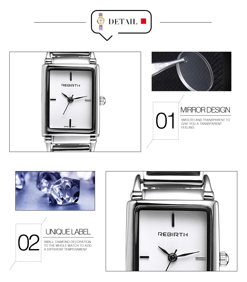 REBIRTH Women Dress Watch Luxury Brand Fashion Quartz Lady Stainless Steel Bracelet Watch Casual Clock Montre Femme Reloj Mujer 2018