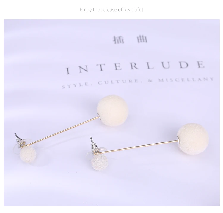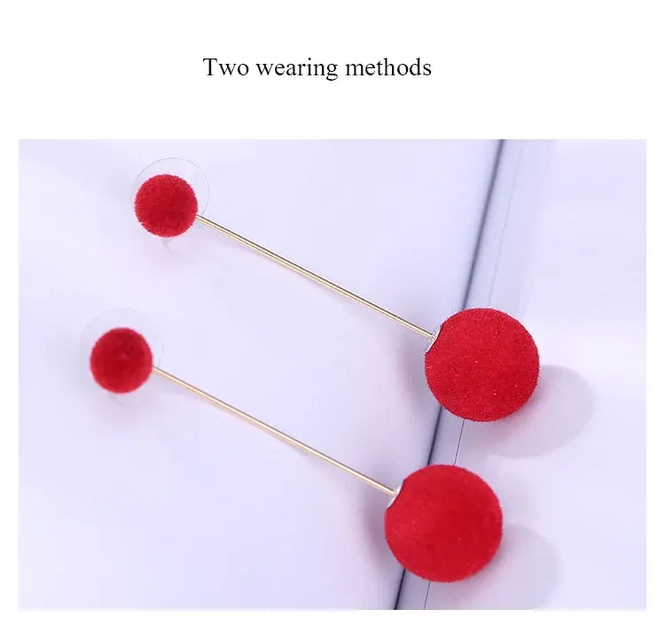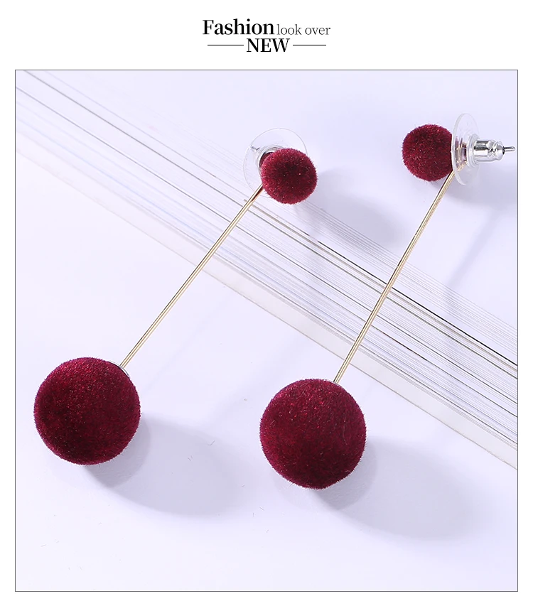 Red Black Fashion Plush Ball Long Earrings For Women Korean Velvet Round Tassel Long Stud Earrings Gift Jewelry Statement