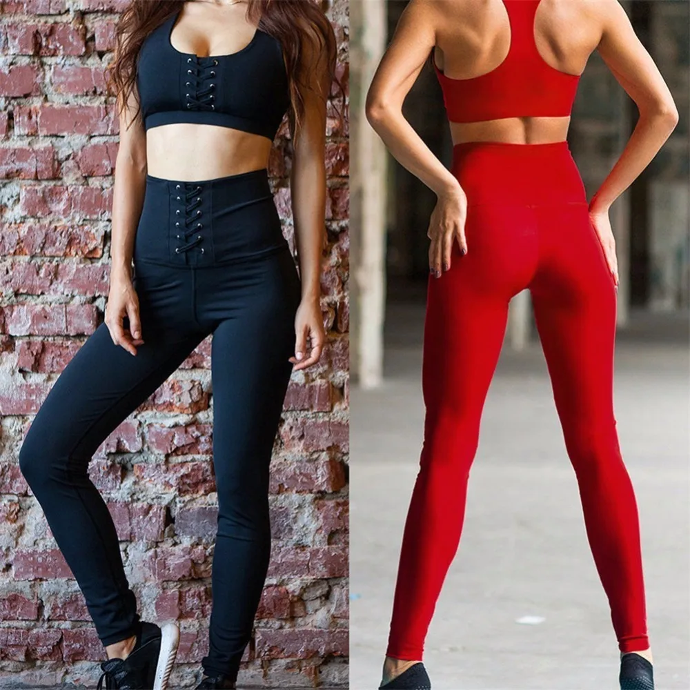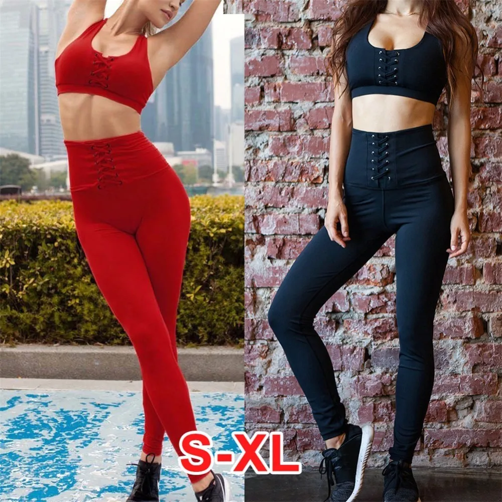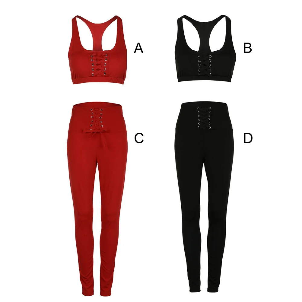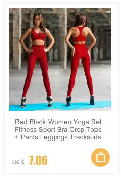 Red Black Women Yoga Set Fitness Sport Bra Crop Tops + Pants Leggings Tracksuits Gym Workout Elastic Breathable Sportswear