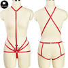 Red Body Harness Set Women Cage Bra Sexy Lingerie Pole dance Fetish Goth Wedding Garter Belt Bondage Stocking Leg Harness