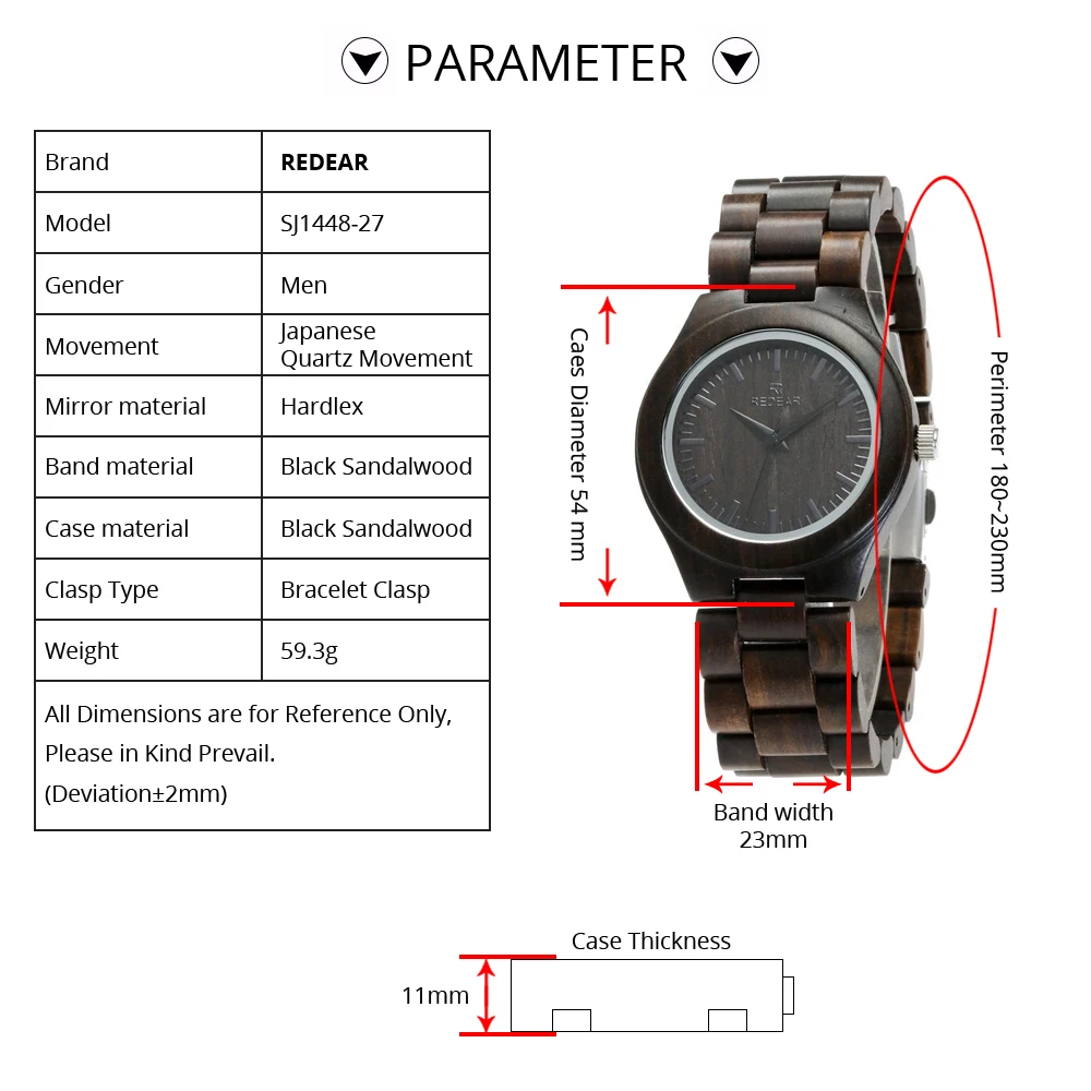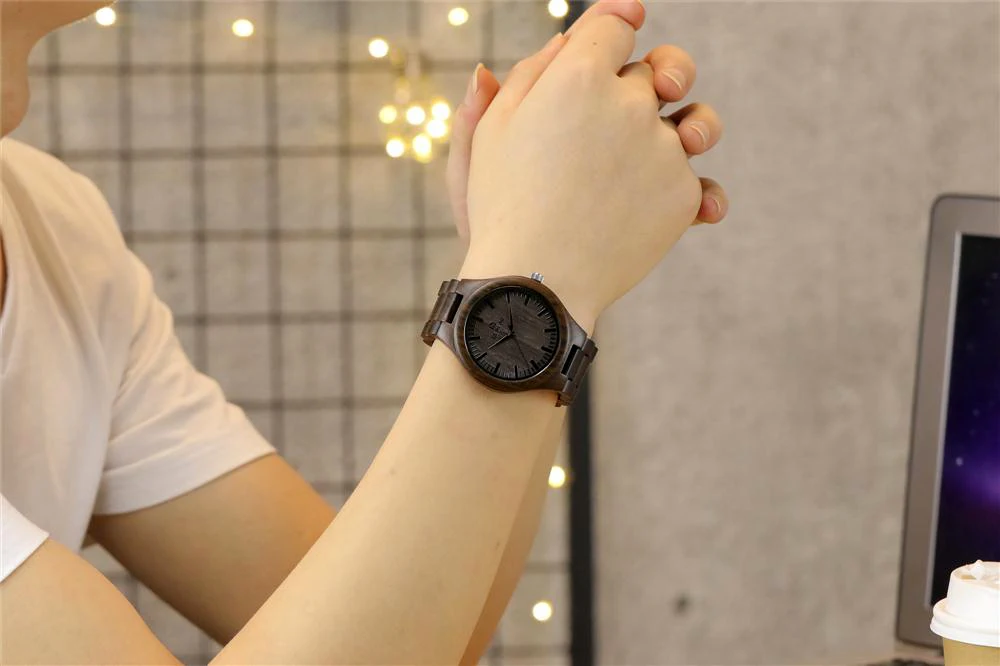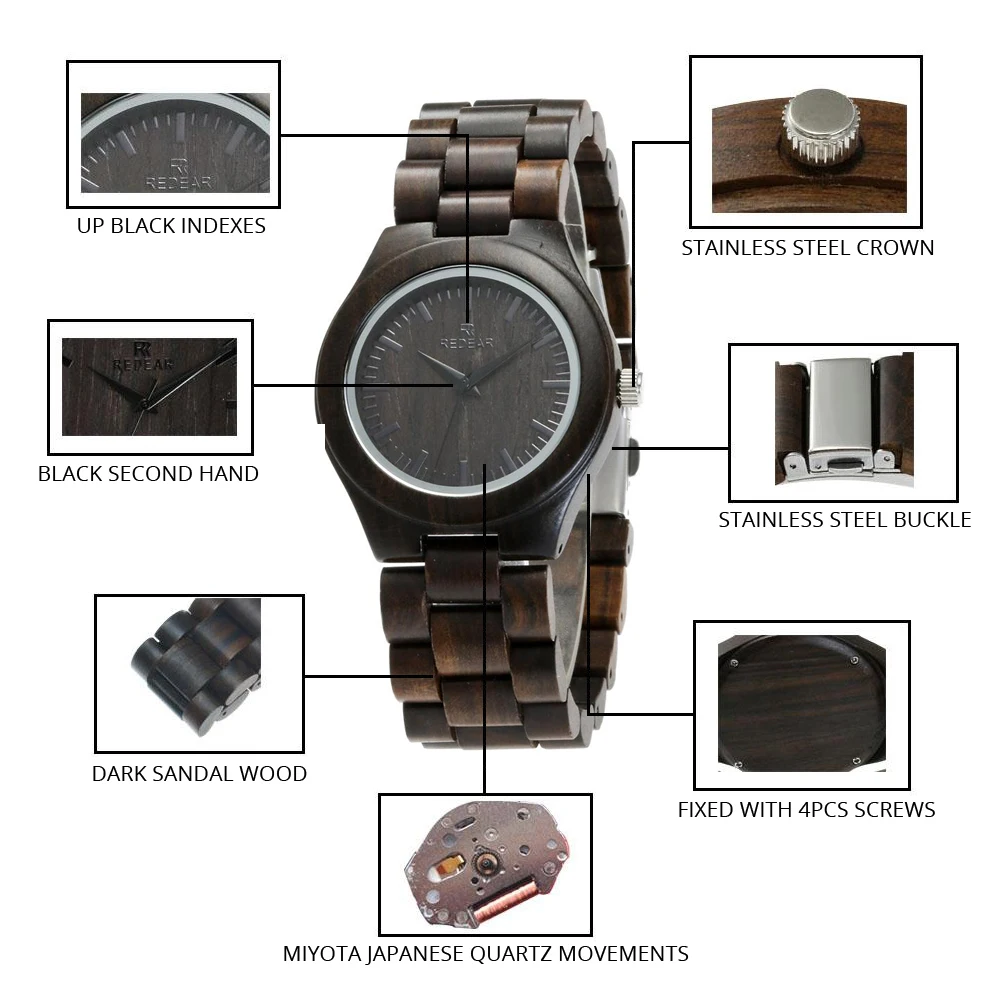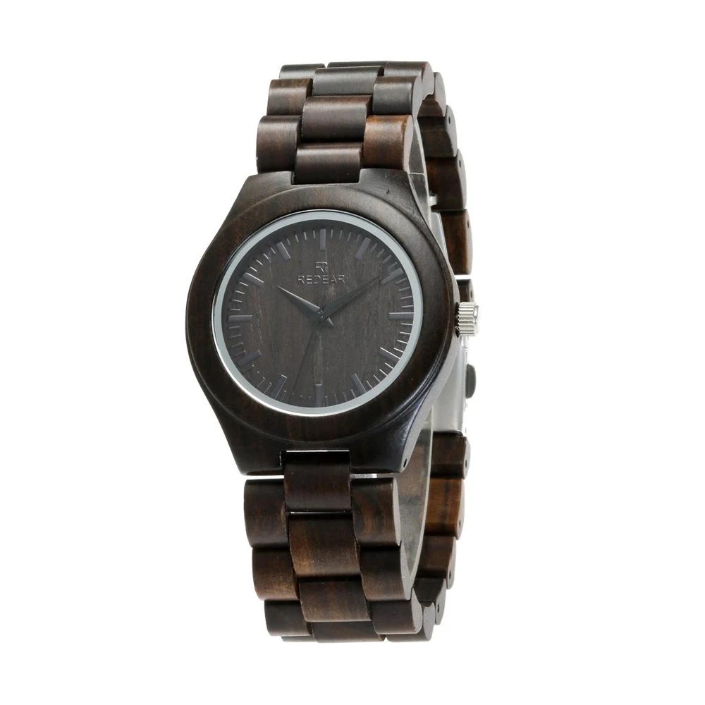 REDEAR Handmade Black Sandalwood Watches Lover’s Watches Cool Nature Wood Quartz Automatic Watch in Gift Box