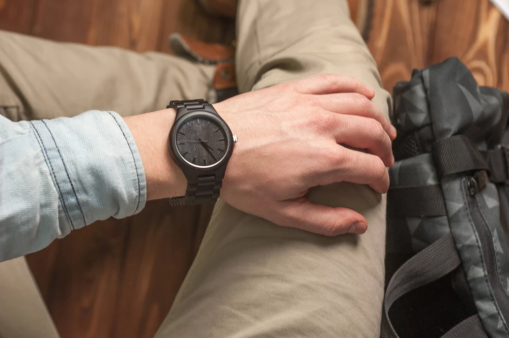 REDEAR Handmade Black Sandalwood Watches Lover’s Watches Cool Nature Wood Quartz Automatic Watch in Gift Box Without LOGO