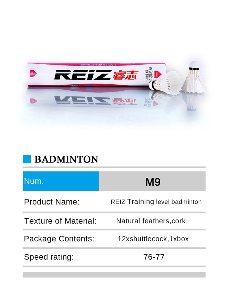 Reiz M9 12PCS/Tube Shuttlecocks Badminton White Feather Shuttlecocks Professional Competition and Game Badminton Accessories