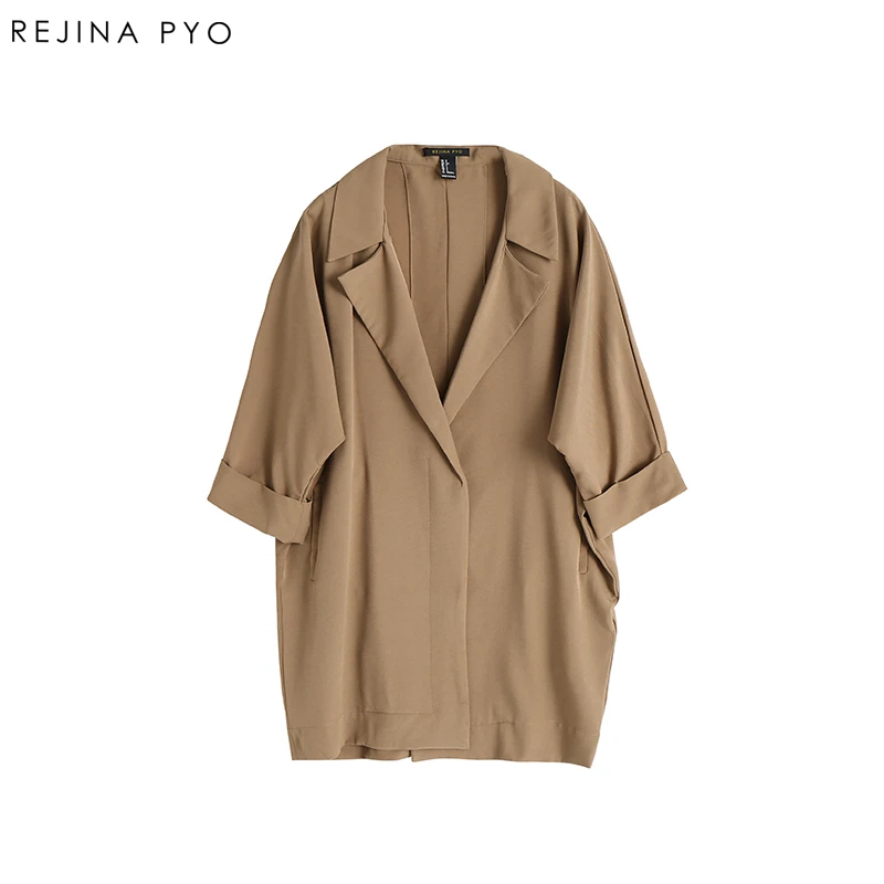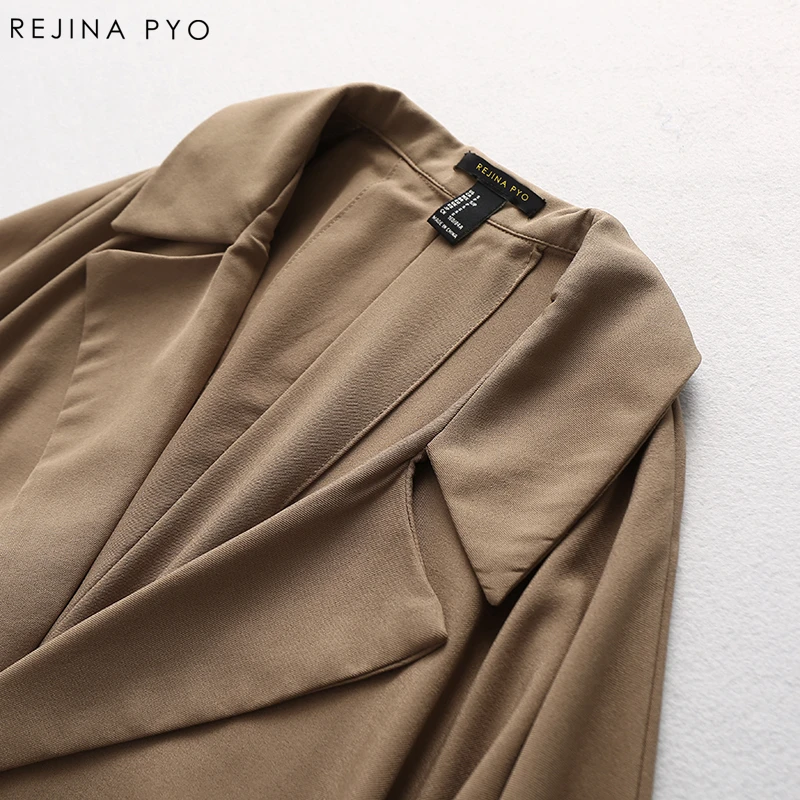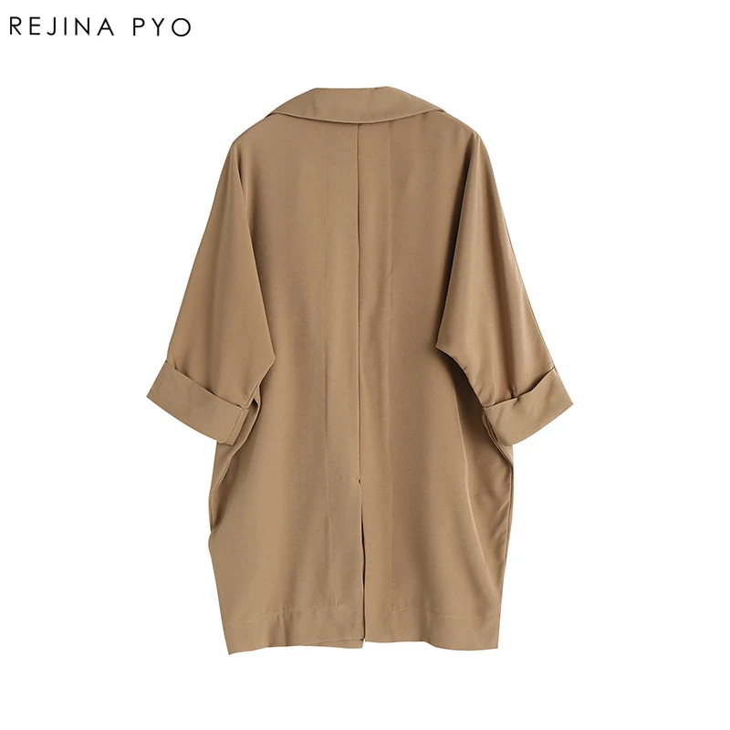 REJINAPYO Women Solid Elegant Open Stitch Turn-down Collar Female Casual All-match High Street Tench Coat Outerwear