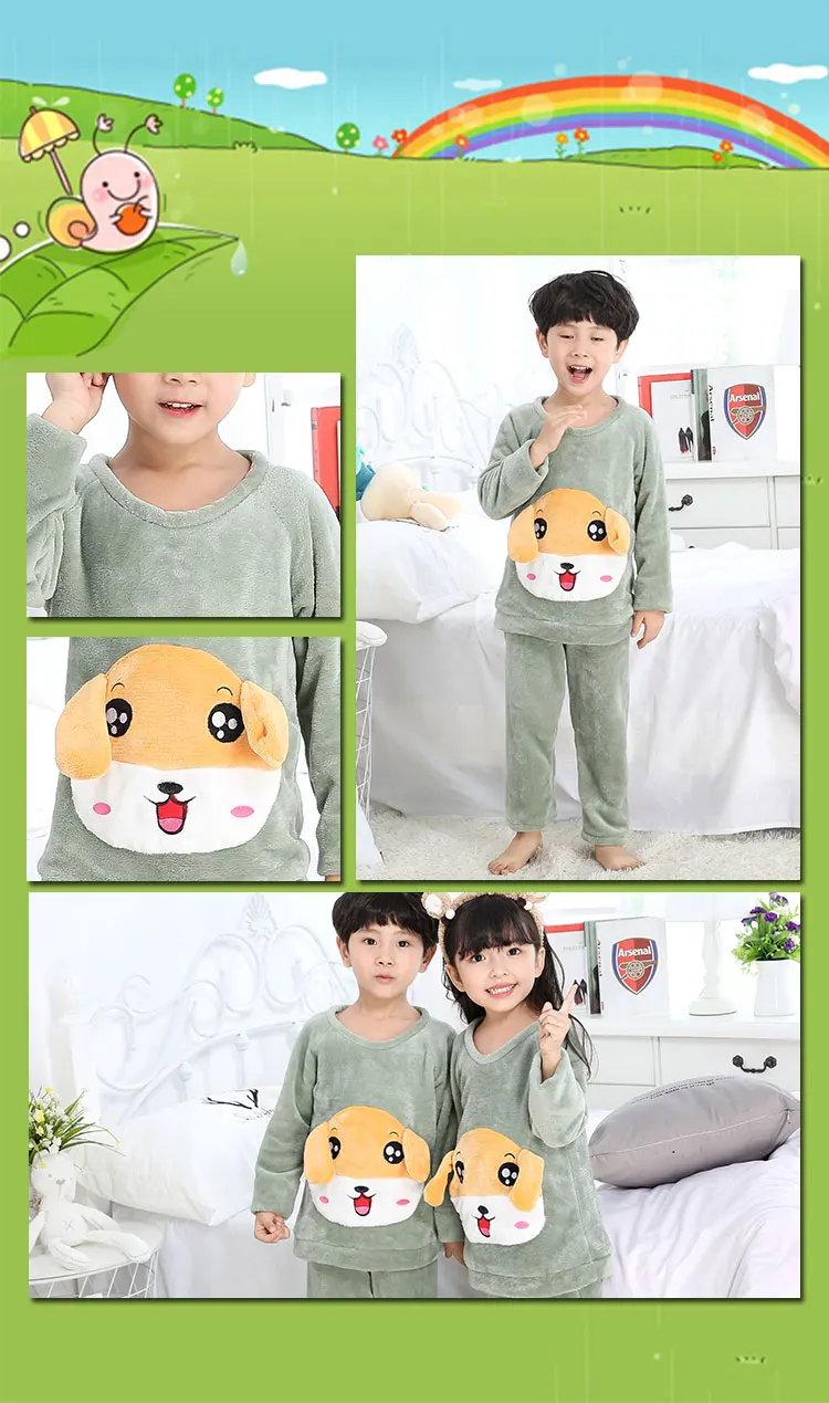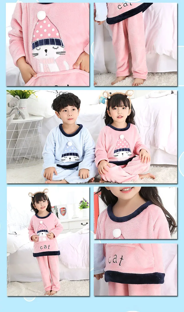 Retail Children Christmas deer Pajamas Warm Flannel Sleepwear Girls Loungewear Coral Fleece Kids pajamas Homewear Leisure Z1190