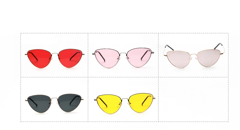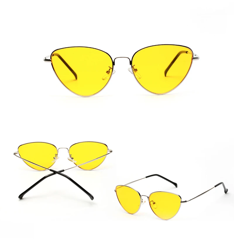Retro Cat Eye Sunglasses Women Yellow Red Lens Sun glasses Fashion Light Weight Sunglass for women Vintage Metal Eyewear