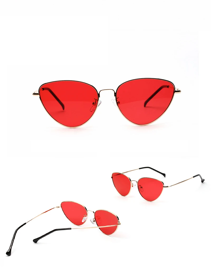 Retro Cat Eye Sunglasses Women Yellow Red Lens Sun glasses Fashion Light Weight Sunglass for women Vintage Metal Eyewear