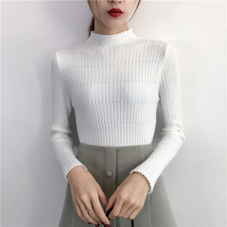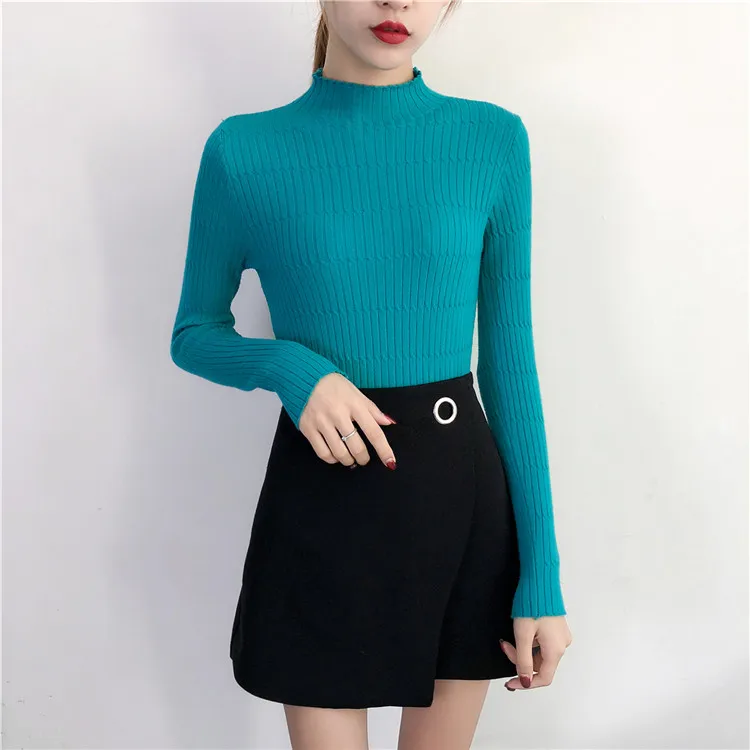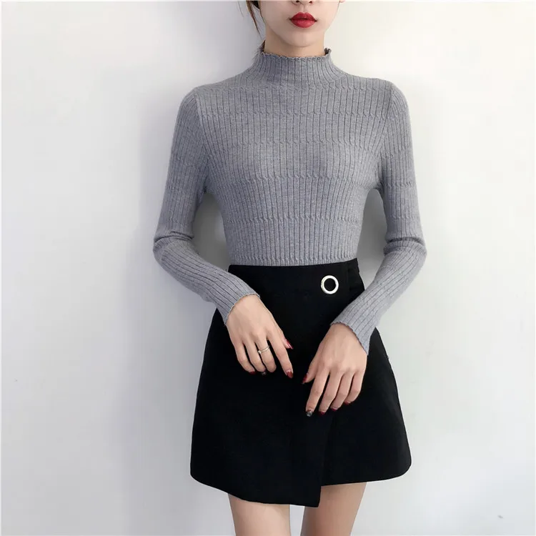 Ruffles long sleeve Autumn winter women sweaters pullovers korean casual crop sweater slim solid knitted jumpers sweter mujer