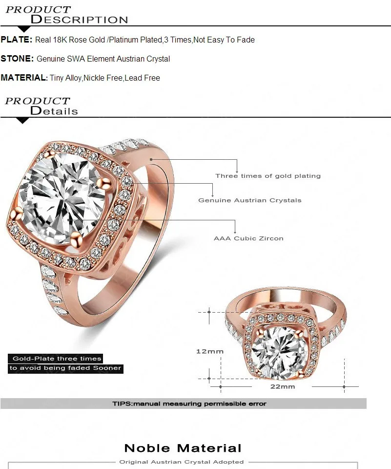 | 2016 Ring Jewelry CZ Diamond 18k Rose Gold Plate SWA Elements Austrian Crystal Fashion Finger Rings Anillos Bijoux ![]() ![]() ![]() ![]() ![]() ![]() ![]() ![]() |