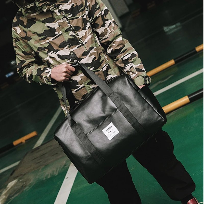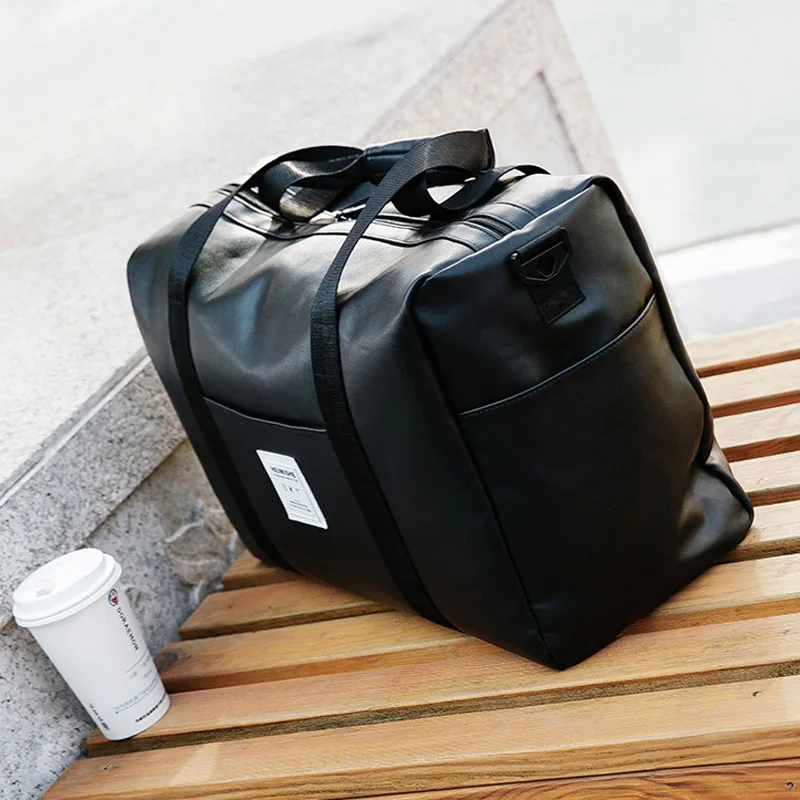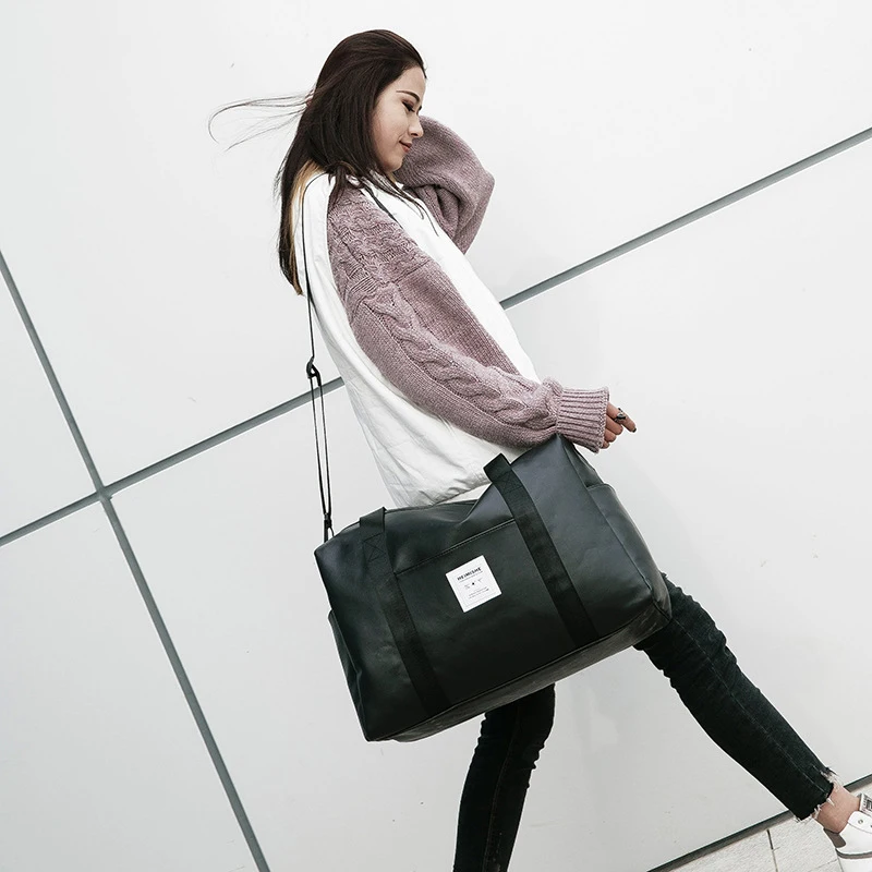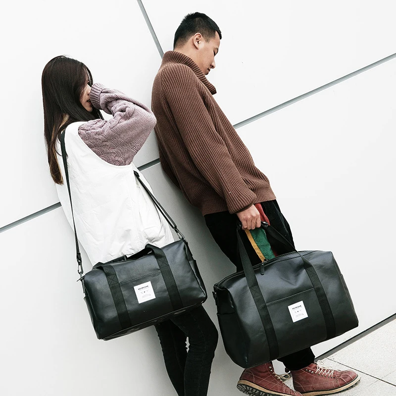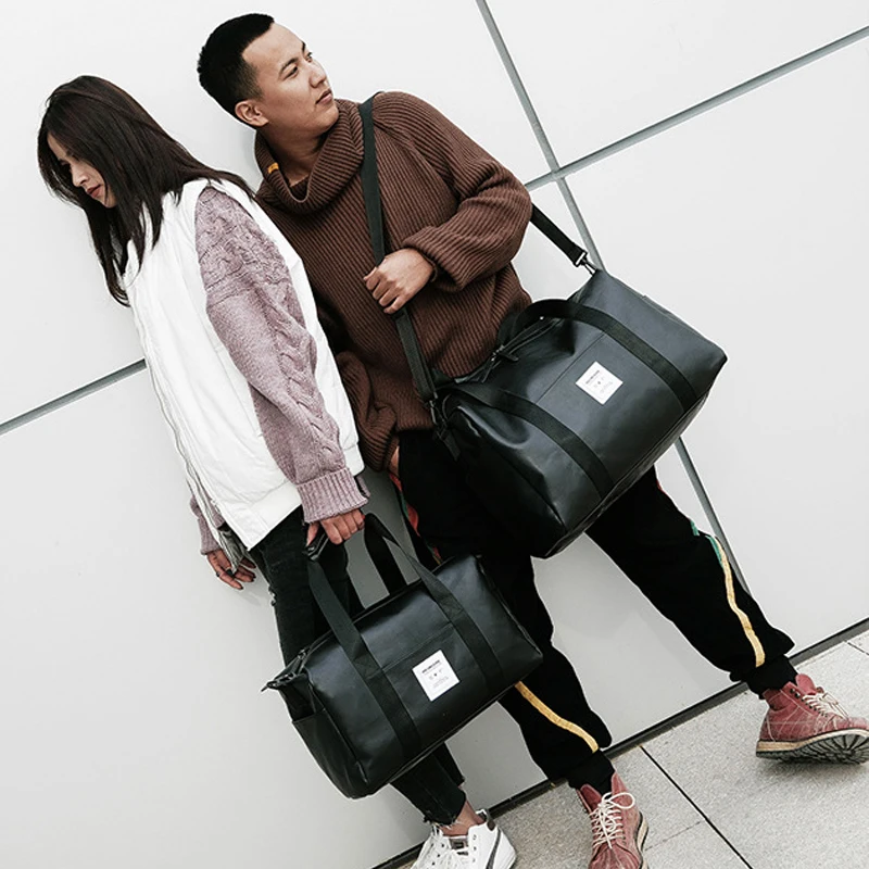 Ringed Penguin PU Leather Travel Bag Women Handbag Big Capacity Men Women Travel Luggage Bag Leather Weekend Duffel Bags